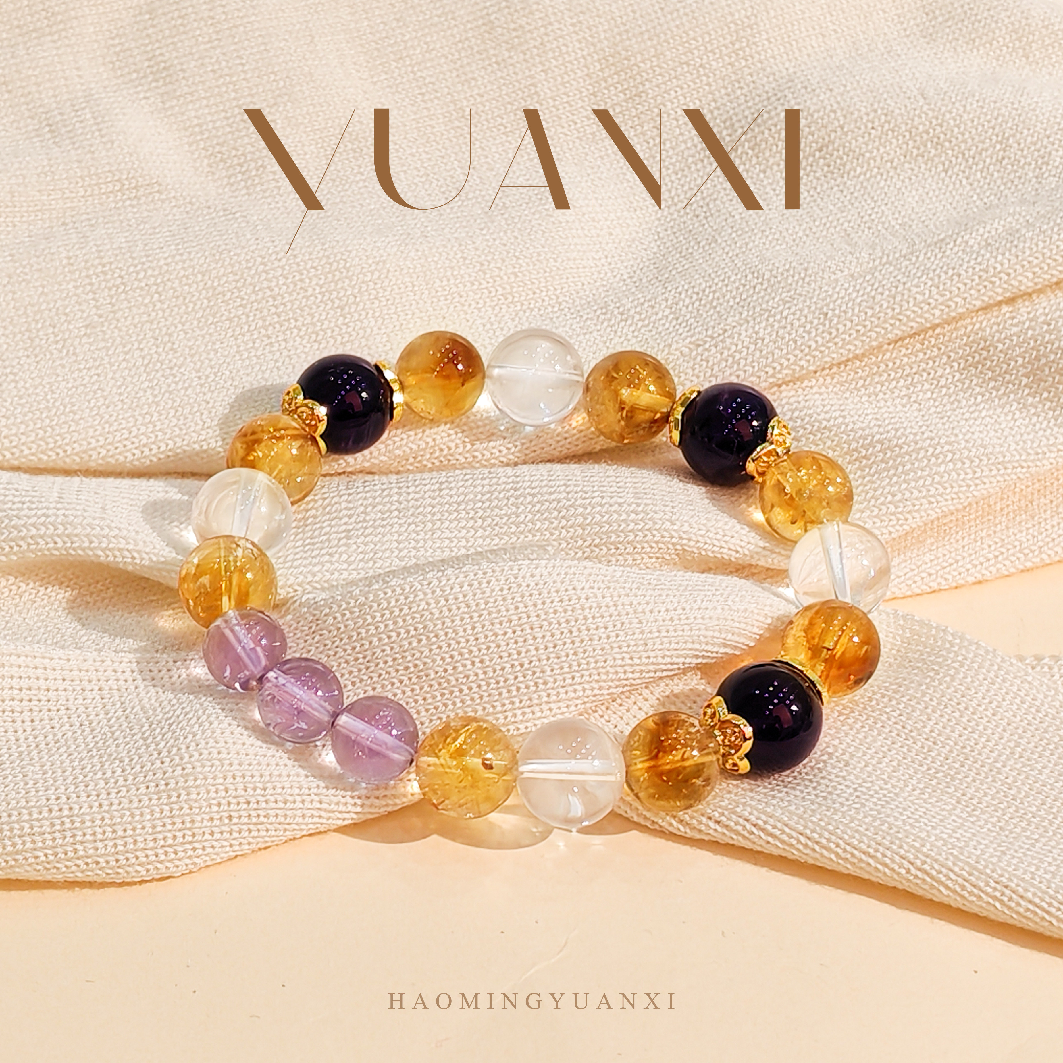 【幻紫鎏光】YUANXI天然水晶紫水白水金发晶送女生闺蜜情侣送礼物