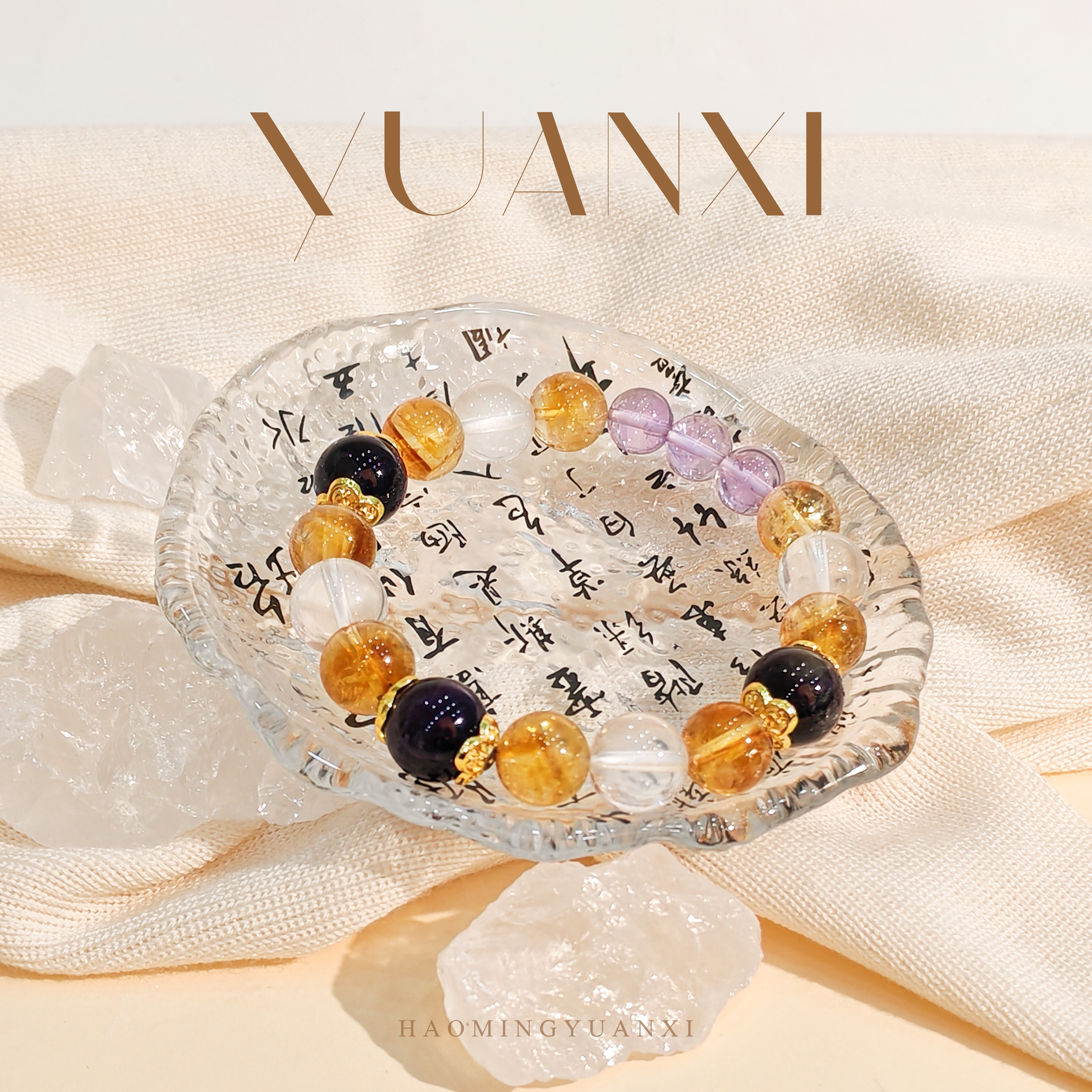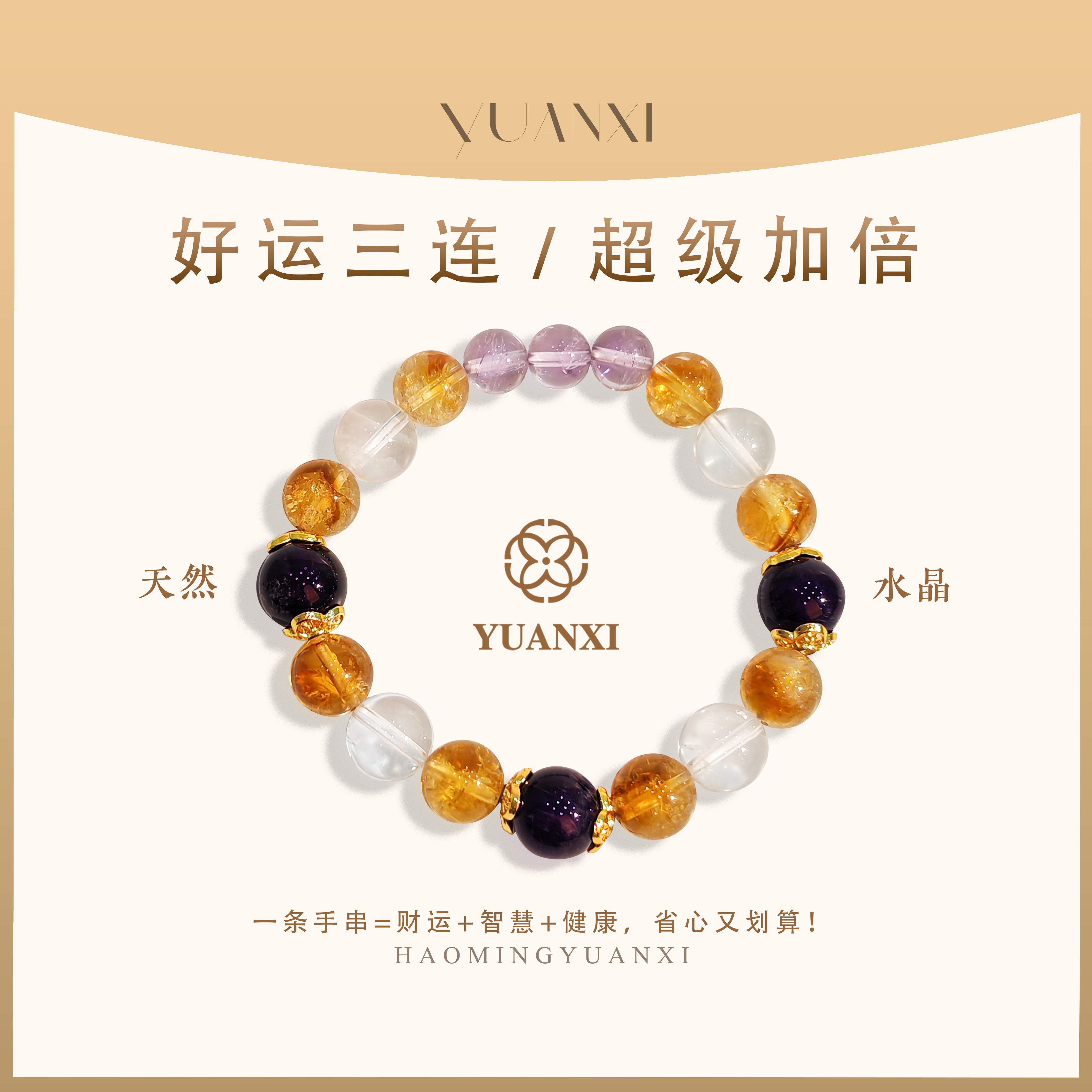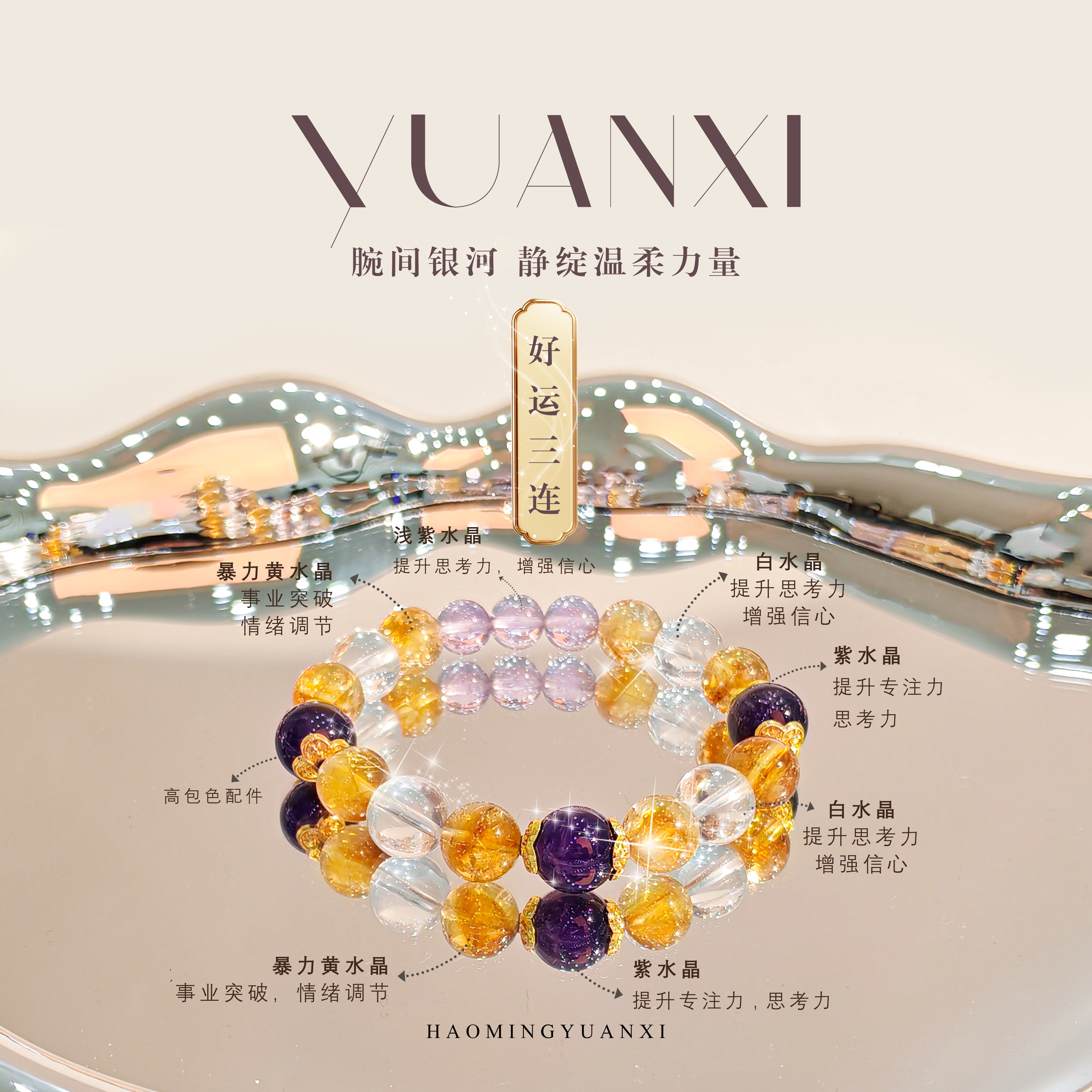 【好运三连】YUANXI天然水晶黄塔晶紫水白水送人女生闺蜜情侣礼物