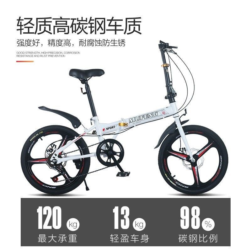 20寸折叠变速自行车男女中小学生成人碟刹单车便携通勤折叠变速车