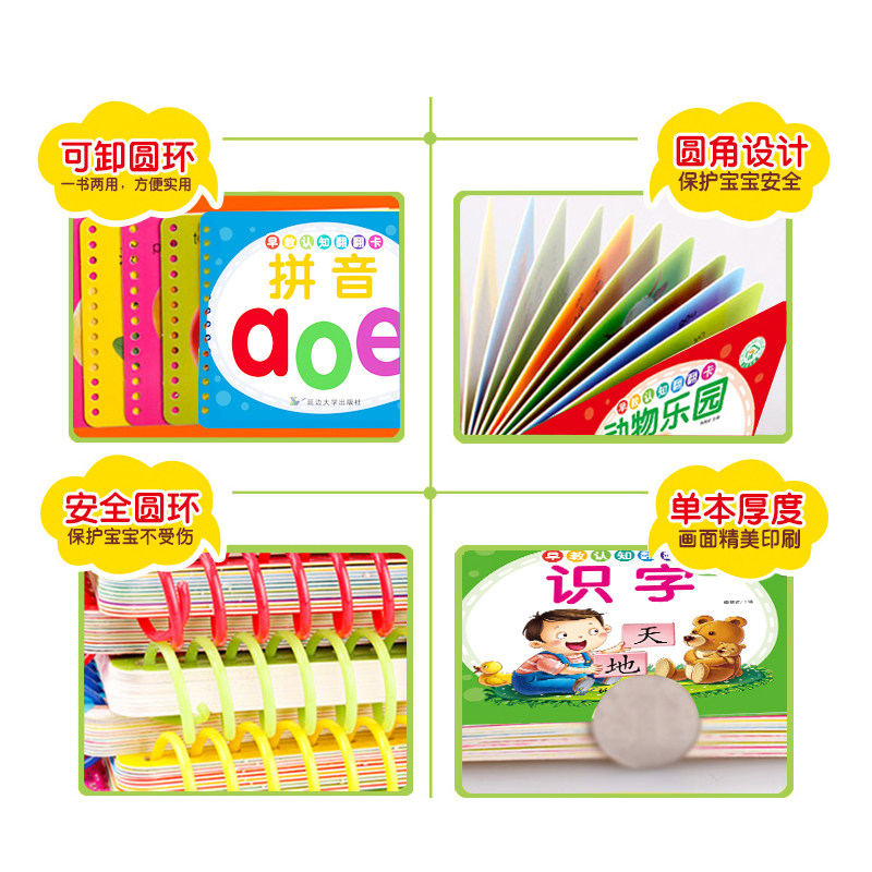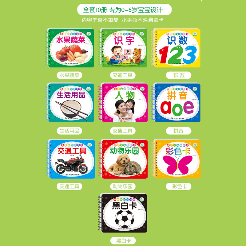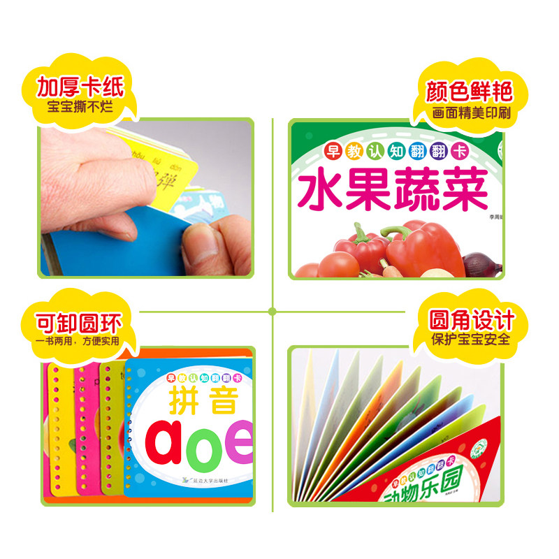 启蒙早教翻翻卡幼儿宝宝益智书籍圆角纸板书撕不烂三字经弟子规唐诗生活交通人物动物彩色黑白卡识字识数水果拼音成语儿歌数字故事