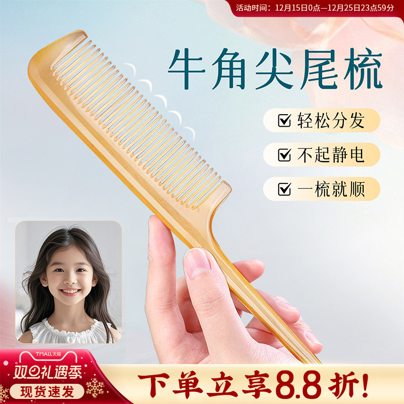 牛角梳儿童梳子小女孩专用宝宝梳不伤分发线挑发防造型静电尖尾梳