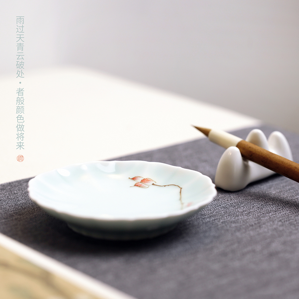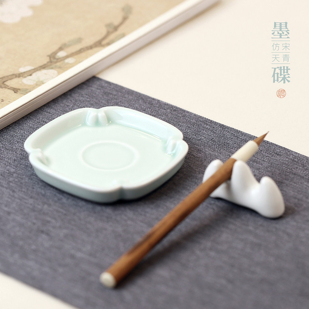 问心堂仿宋天青墨碟陶瓷古风书法笔舔墨池毛笔墨盘陶瓷小楷毛笔抄经书法国画专用墨池文房四宝墨盒砚台