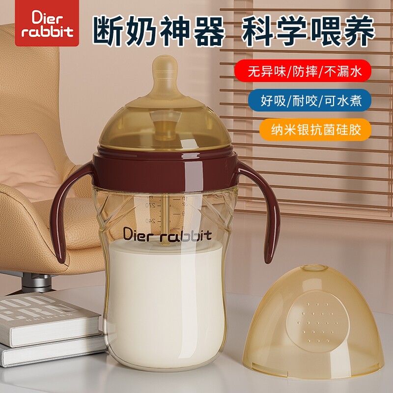 奶瓶PPSU翻盖学饮杯吸管奶瓶1-2-3岁以上大宝宝直饮杯喝水杯婴儿