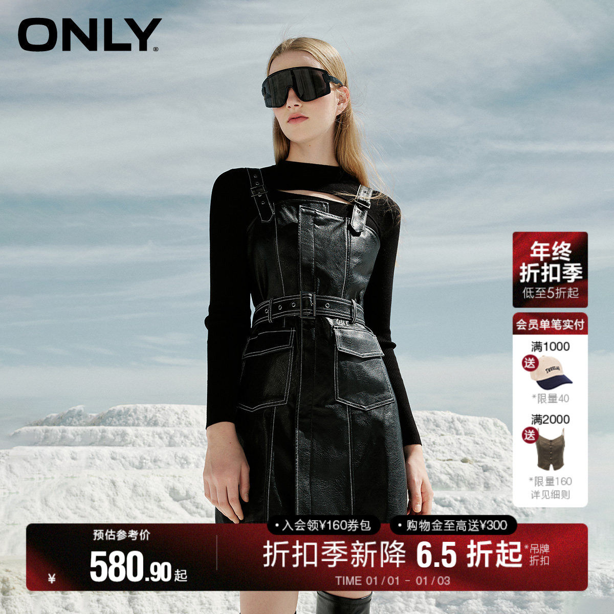 ONLY冬季时尚气质辣妹风套装A字PU欧美短款连衣裙女|12337Y002