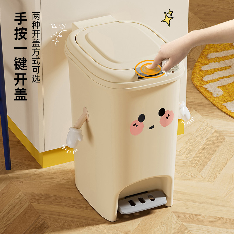 2025新款奶油风垃圾桶家用大号高颜值厨房客厅厕所简约卧室纸篓轻