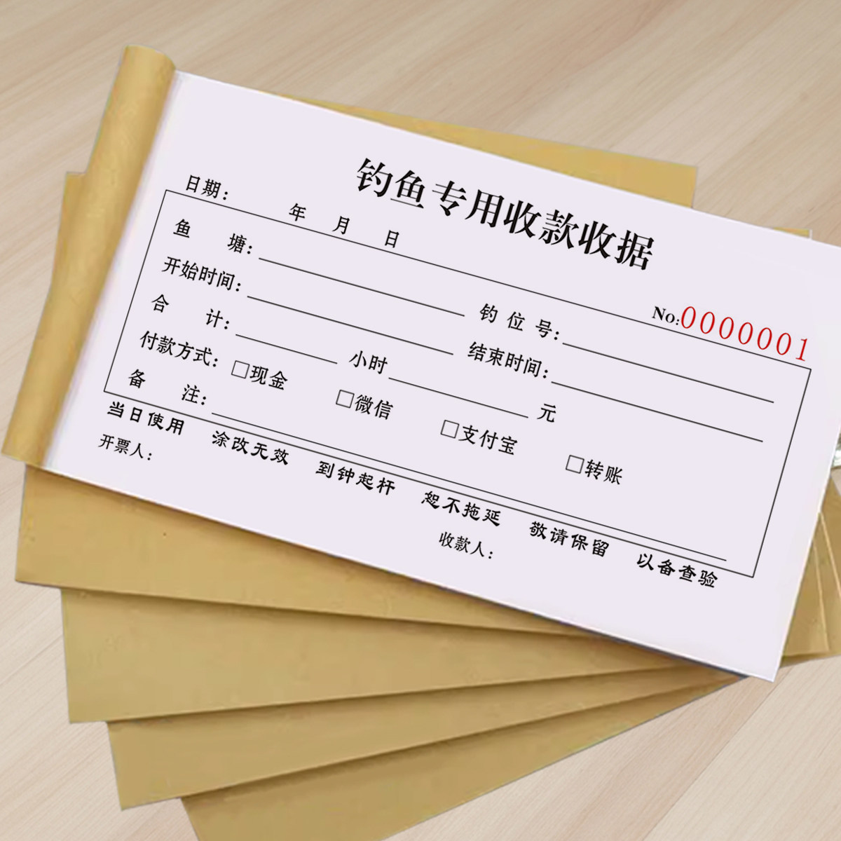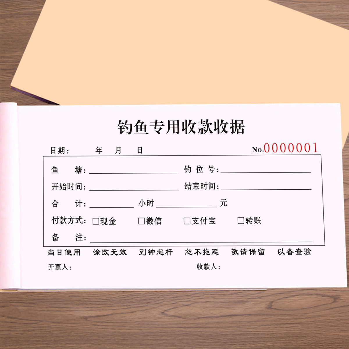 2本包邮钓鱼场通用钓鱼专用收款收据二联鱼塘鱼庄钓鱼收费收据单鱼塘钓鱼场农庄通用钓鱼专用收款收据