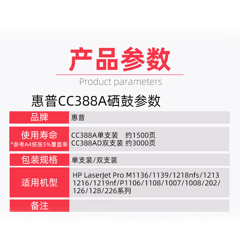 惠普388a墨盒1108 88a原装墨粉盒激光打印机m1136硒鼓m126a易加粉