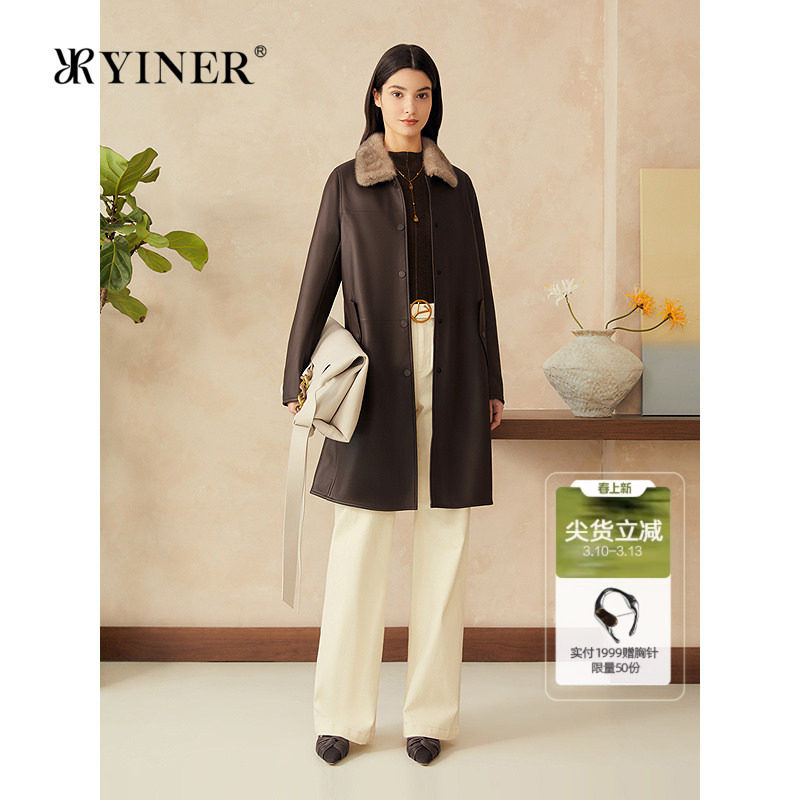 YINER音儿专选2025春季新款中长款水貂毛领绵羊真皮皮衣夹克外套