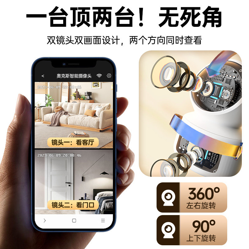 奥克斯摄像头监控家用手机远程无需WiFi网络终身免费流量室内外4G