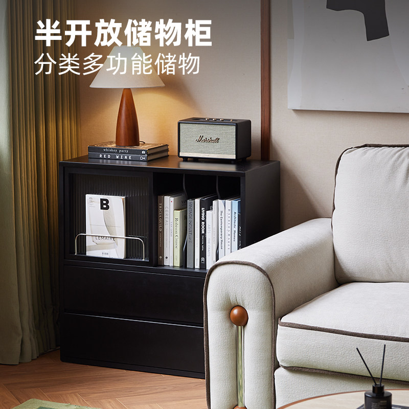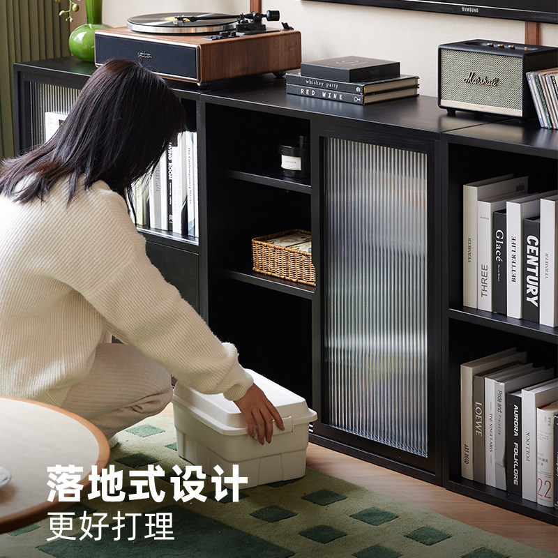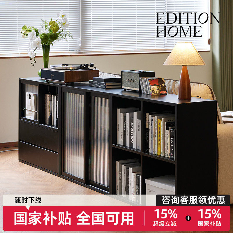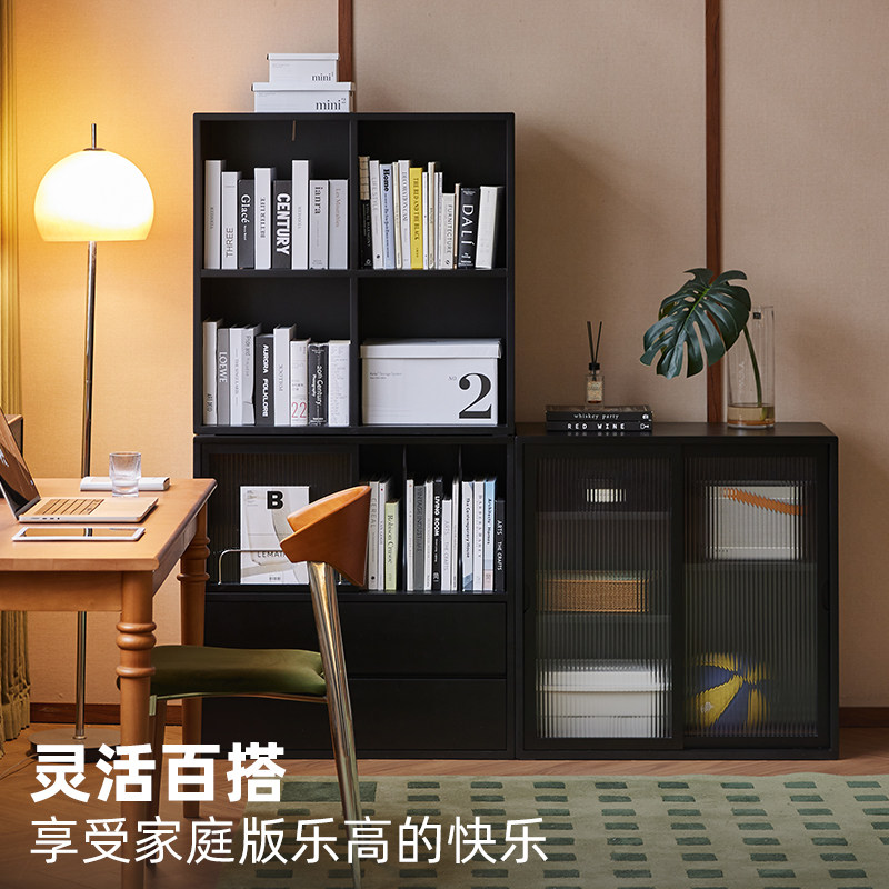 书房实木书柜沙发一体客厅矮柜储物柜书橱黑色柜子北欧中古组合柜
