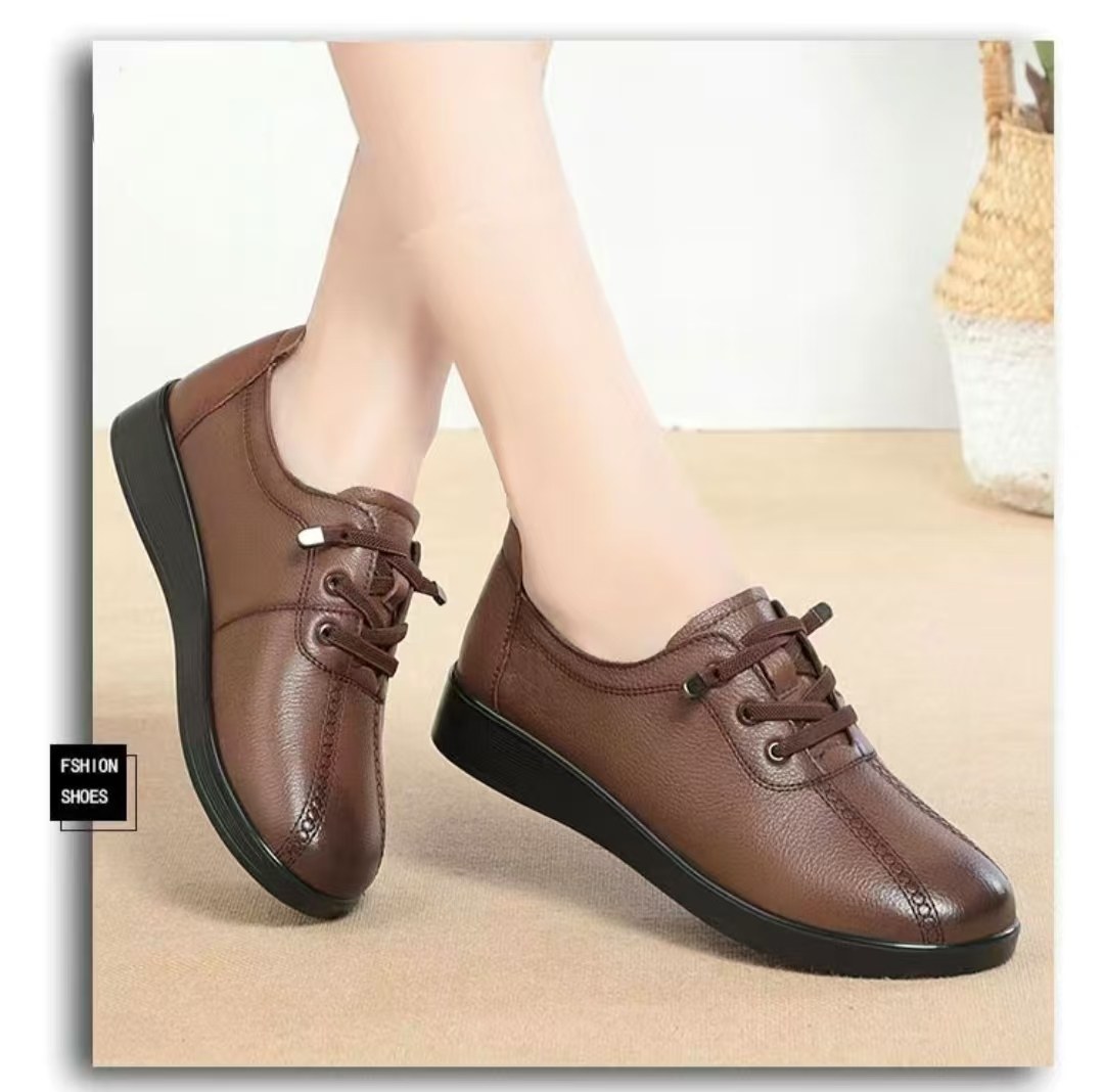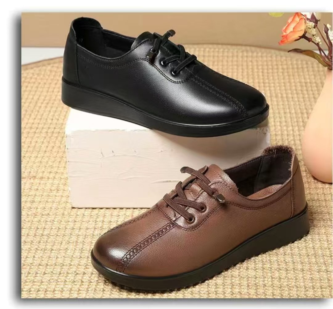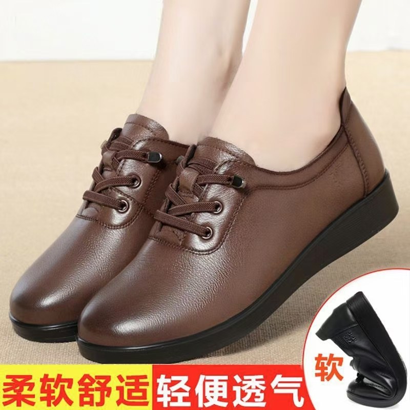 紅青蜒真皮女鞋妈妈鞋2025新款春秋软皮软底防滑舒适平底休闲皮鞋