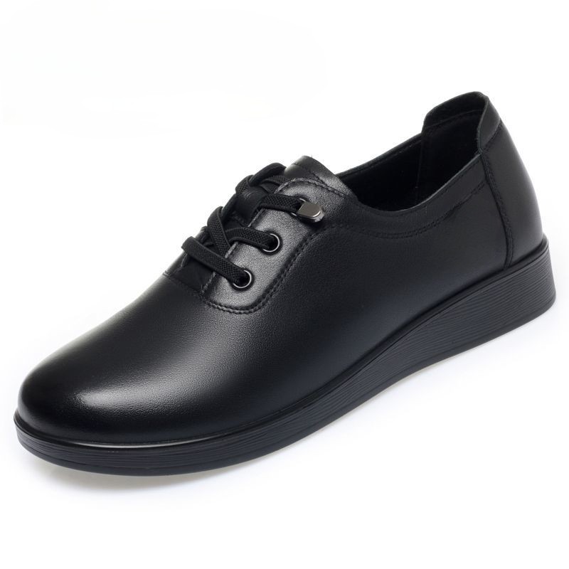 牛筋底妈妈鞋真皮防滑软底休闲中老年单鞋舒适蝴蝶结中年春秋皮鞋