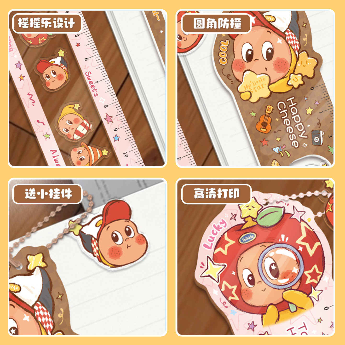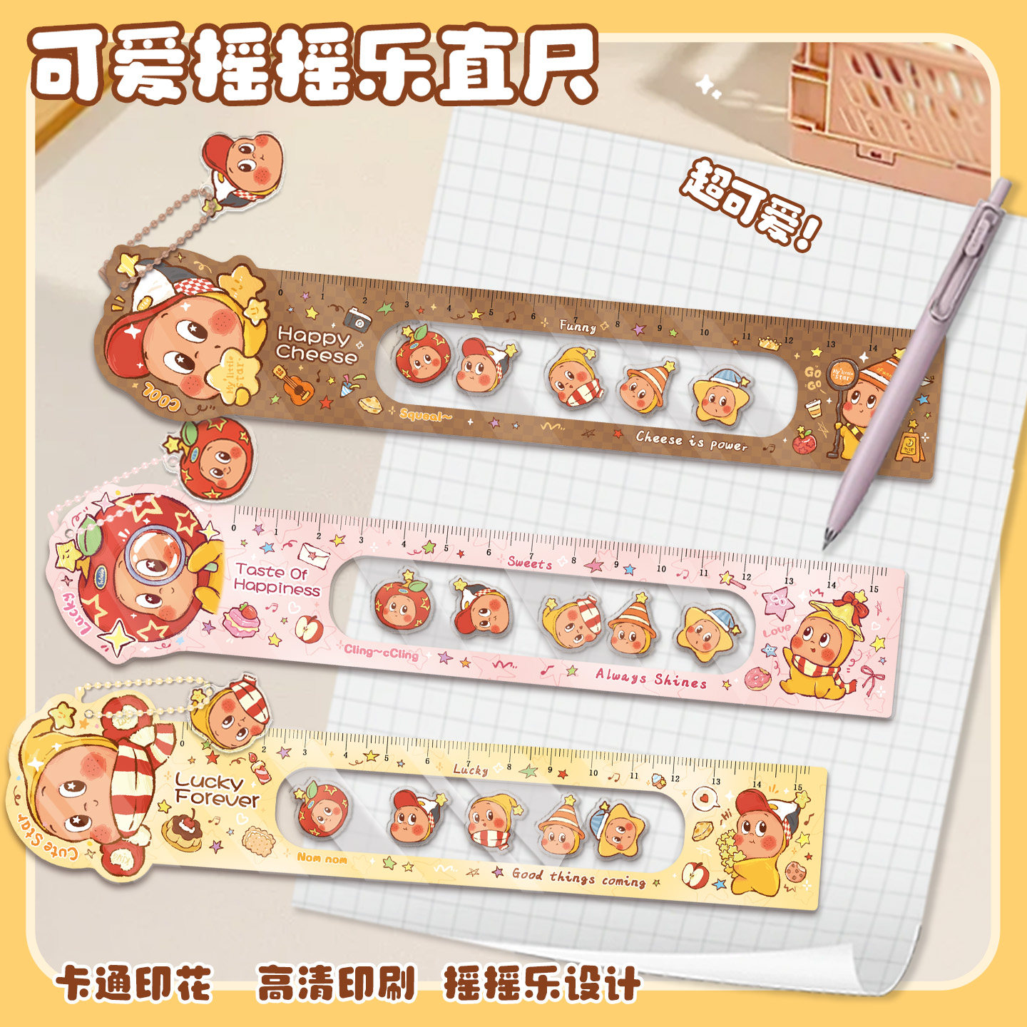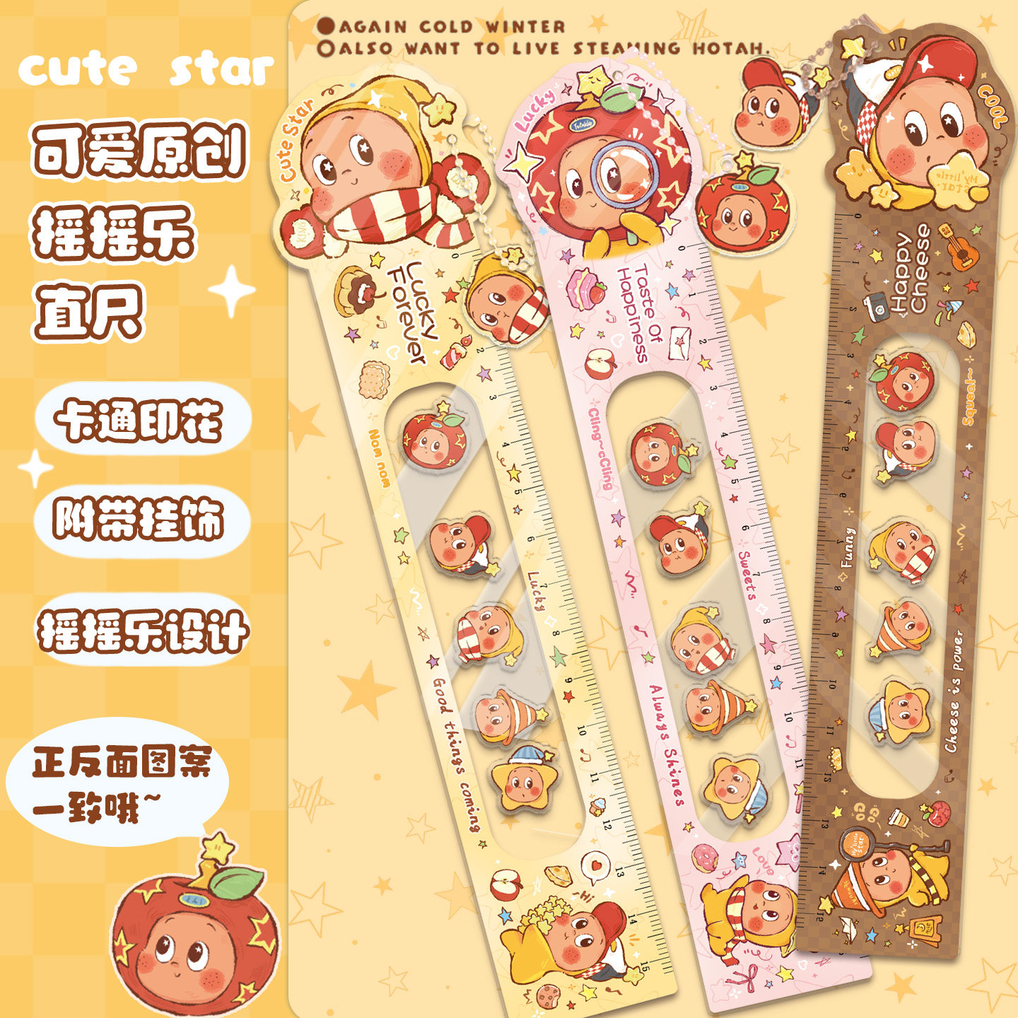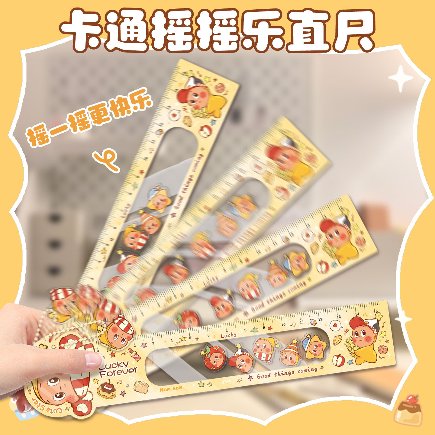 新款可爱星星摇摇乐直尺高颜值卡通测量工具半透明学生文具创意