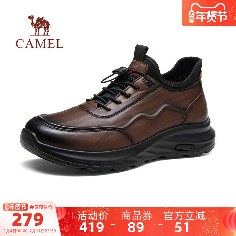 骆驼男鞋2025秋季新款真皮休闲运动鞋爸爸健步鞋百搭商务皮鞋男士