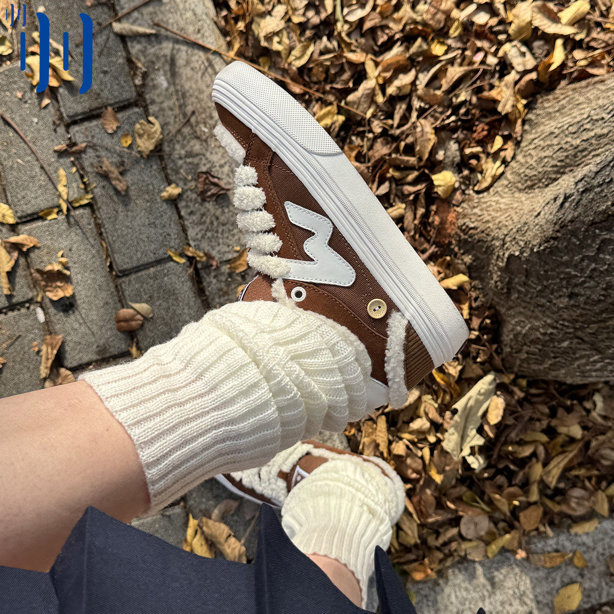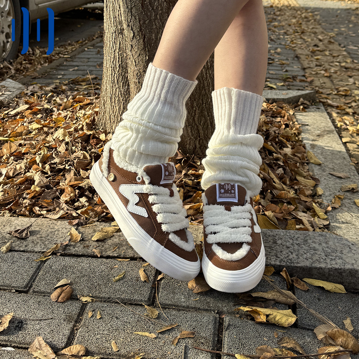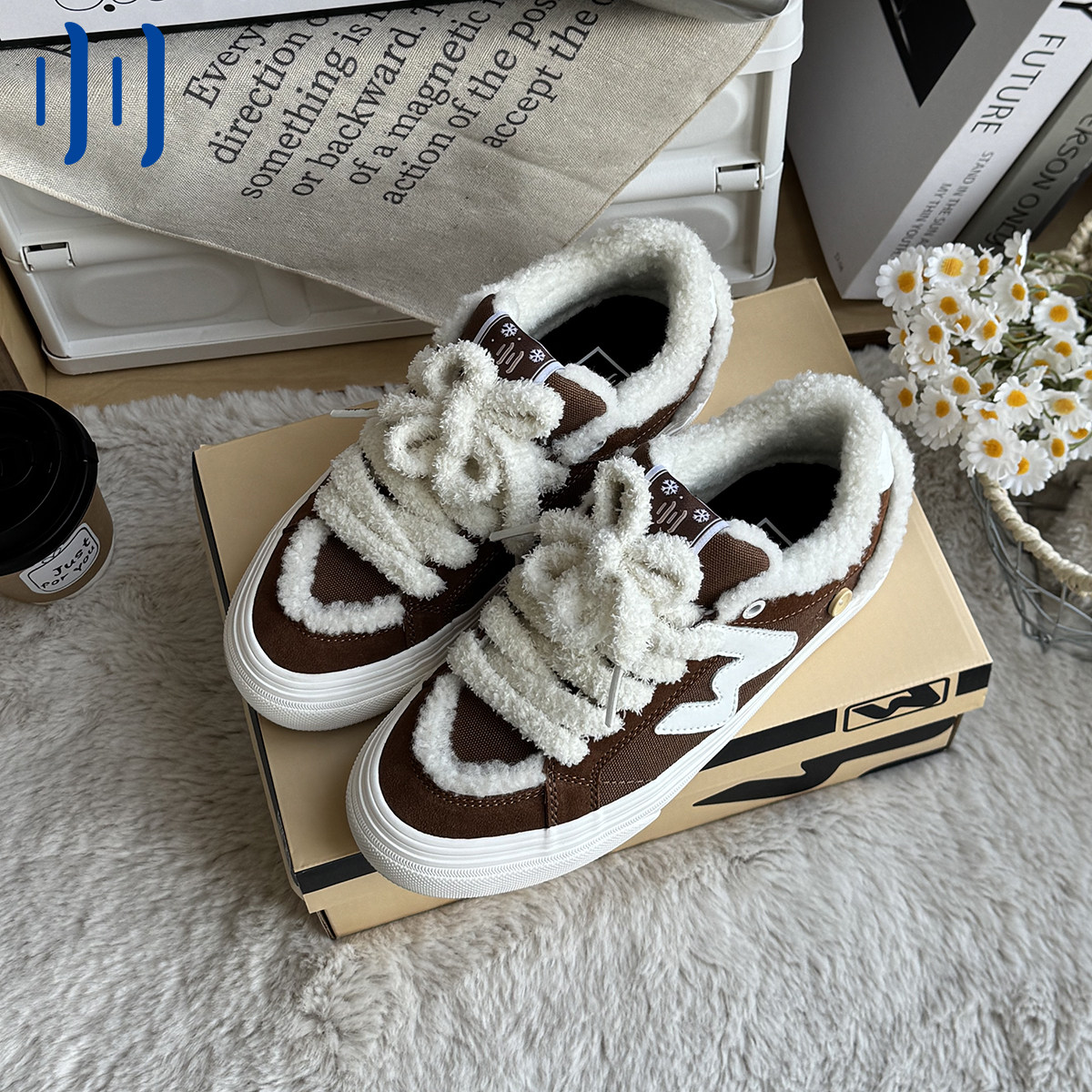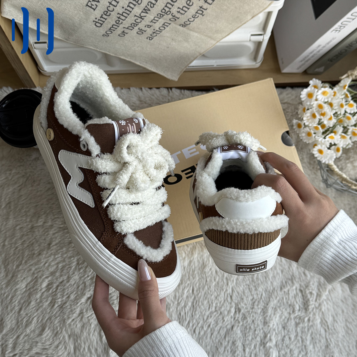 顽刻官方暖冬毛茸茸保暖季校园风W系列低帮可爱男女国潮滑板鞋
