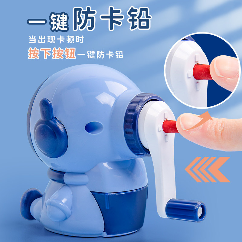 宇航员造型卷笔刀削笔器电动转笔刀小学生专用手摇旋削铅笔刀削器自动进铅机削笔刀男孩幼儿园儿童卡通刨笔机