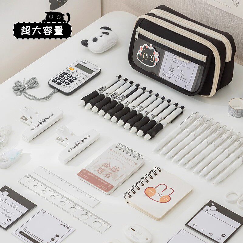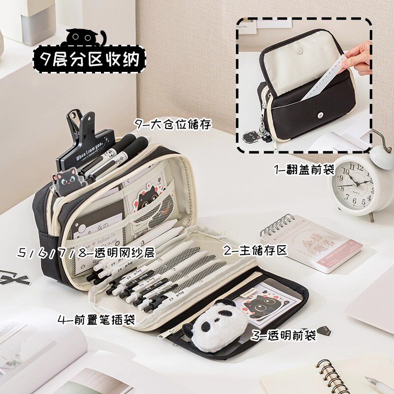 超耐脏小黑猫~多功能大容量笔袋新款超火透明文具盒女生款高颜值ins风小学生铅笔盒痛包超大奶油玩偶猫咪