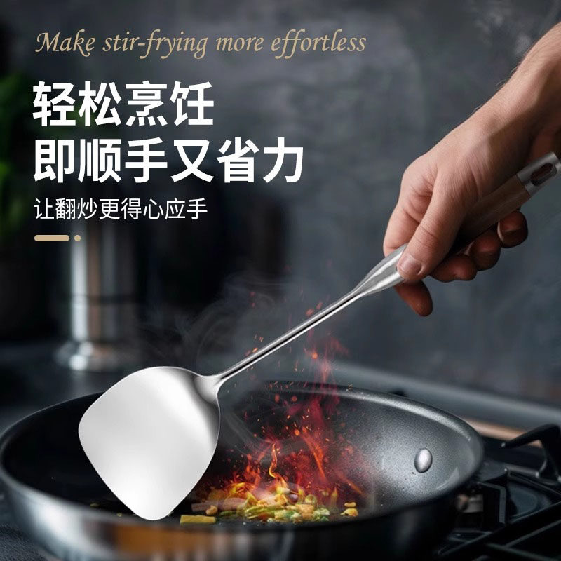 316不锈钢炒勺炒铲锅铲家用长柄汤勺分菜勺厨师专用炒菜勺子铲子