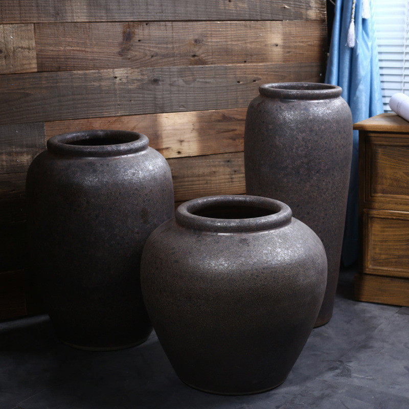 瓷罐做旧手工景德镇粗陶落地中型陶复古插花器摆件落地花盆坛子缸
