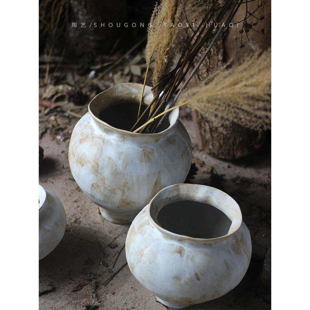 新品诧寂艺术感植物盆栽不规则陶罐花器花盆水培鲜花手工摆件花瓶