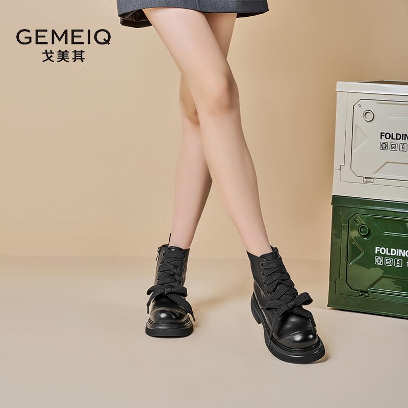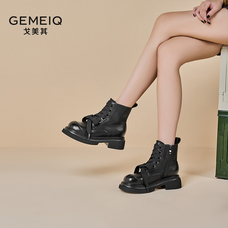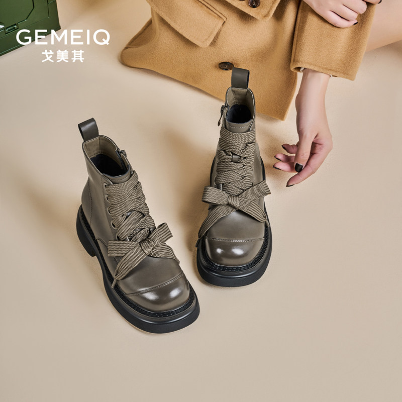戈美其马丁靴女舒适年春季新款厚底英伦风复古短靴圆头百搭瘦瘦靴