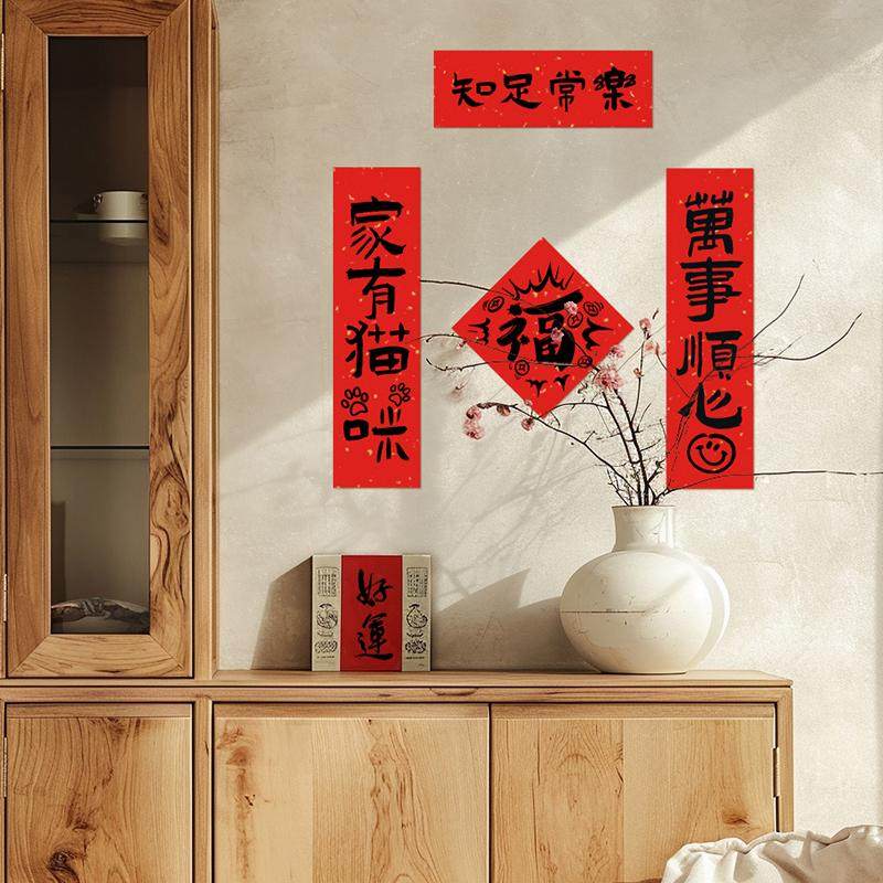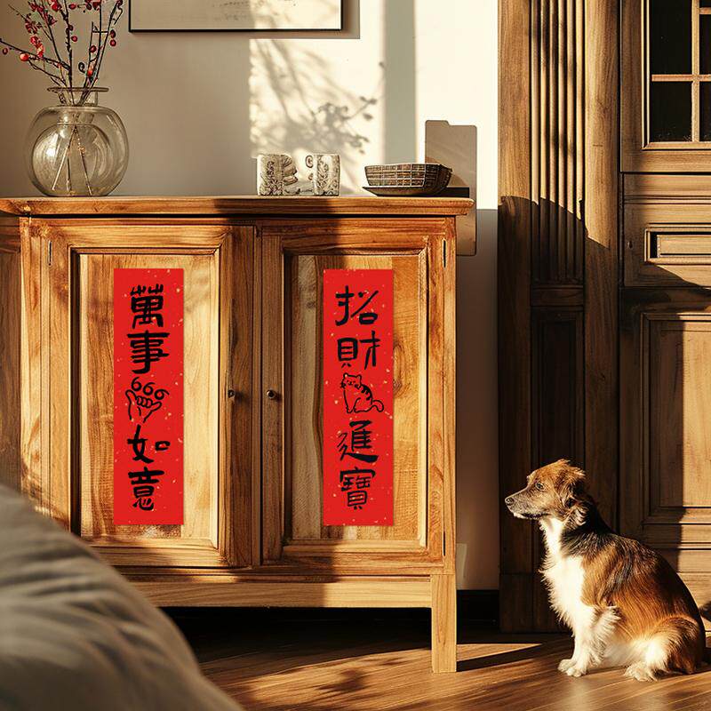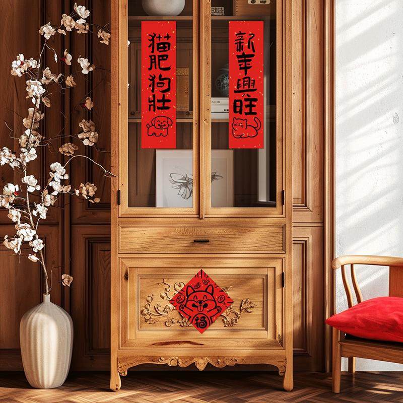 新款可爱猫狗创意小对联拍照道具新年春联蛇年宠物屋春节装饰背景狗屋猫窝过年场景布置狗壮家旺毛顺屎圆