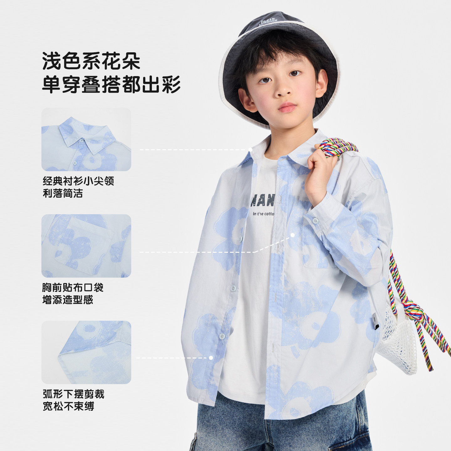 派町童装男童衬衫2026春季新款儿童清新花多满印衬衣长袖上衣韩版