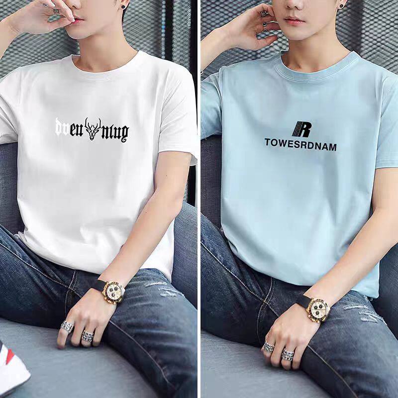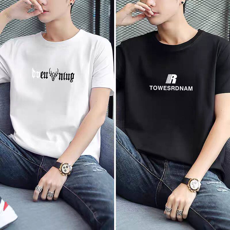 品牌白色短袖T恤男潮牌纯棉透气打底衫宽松帅气百搭上衣黑色流行