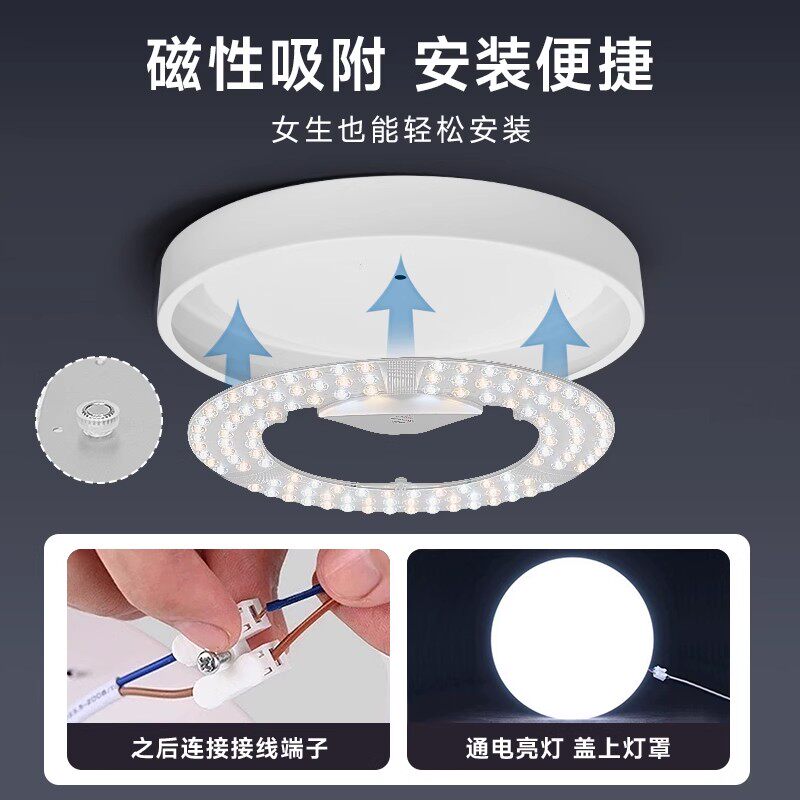 【全网】LED磁吸替换灯芯灯盘三色白光超亮改造模组安装简单