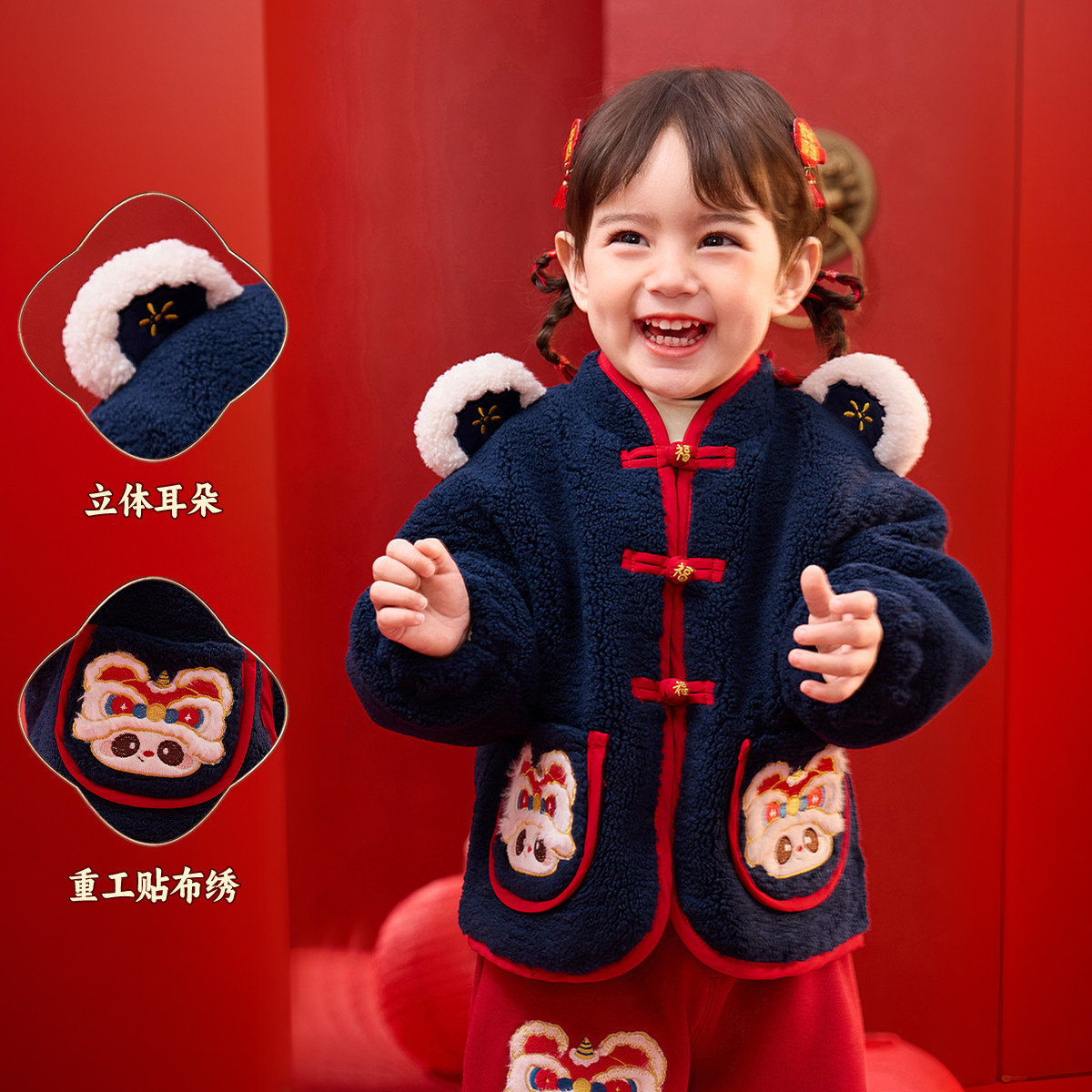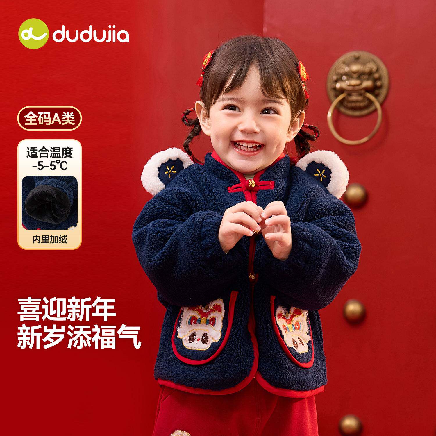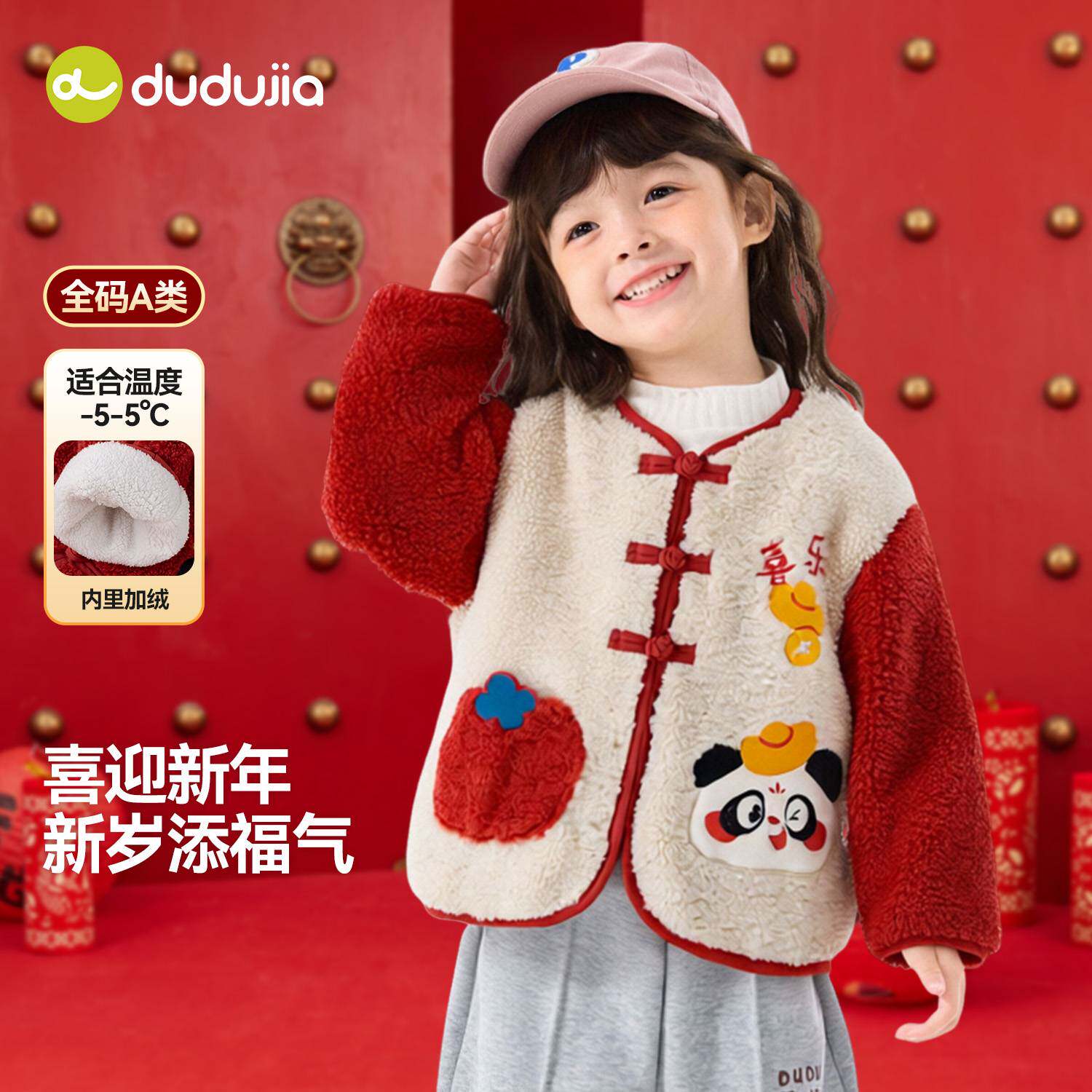 嘟嘟家女童拜年服红色喜庆过年装新年唐装宝宝外套冬装上衣演出服