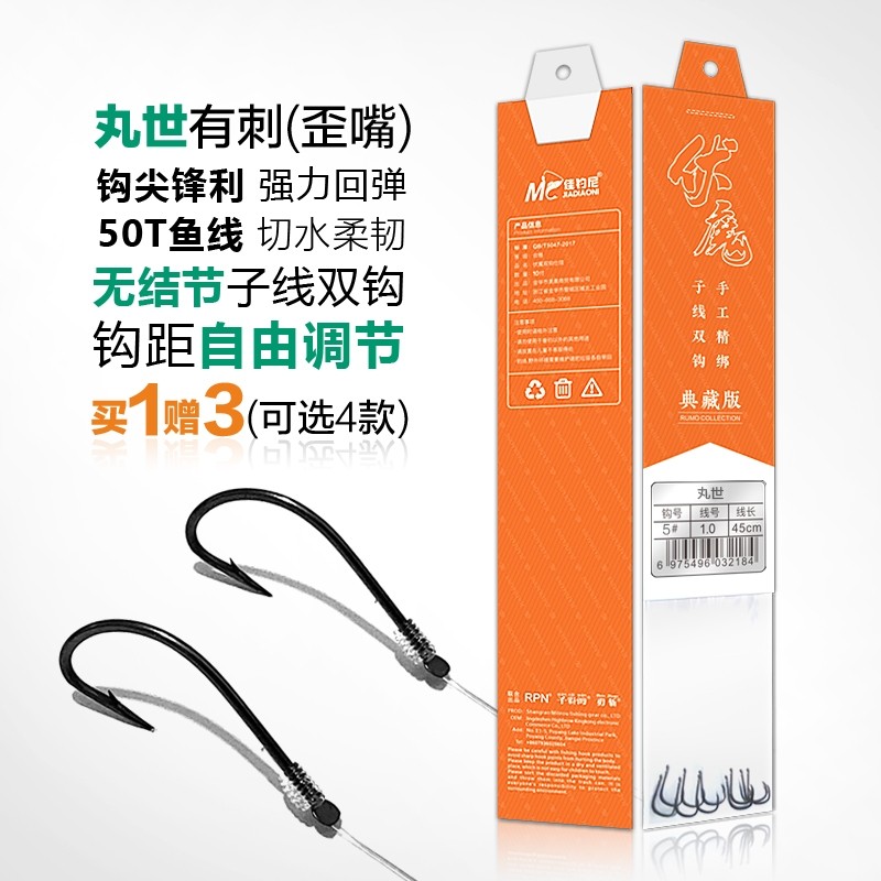 丸世鱼钩正品子线双钩绑好长柄有倒刺鱼钩鱼线组合超硬锋利钓鱼钩