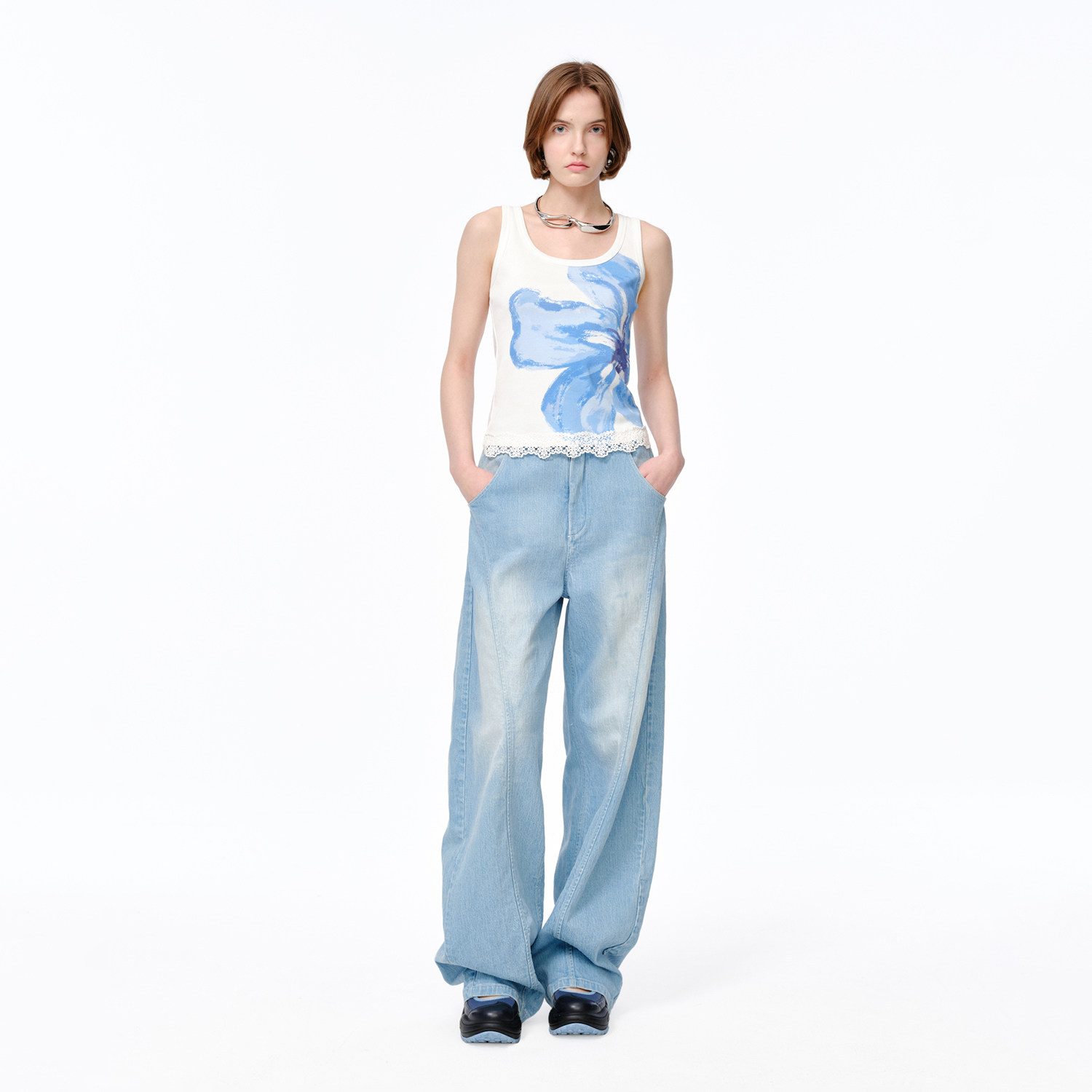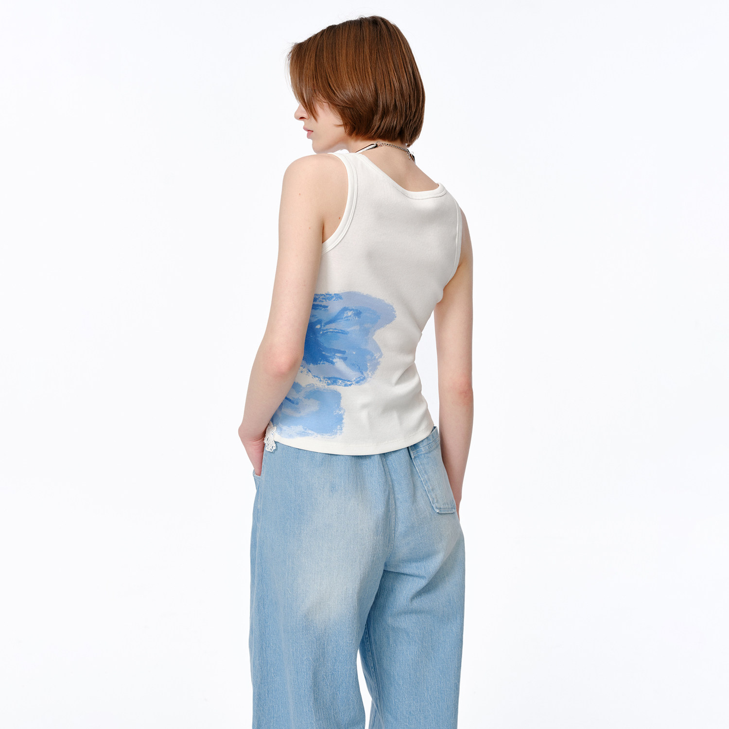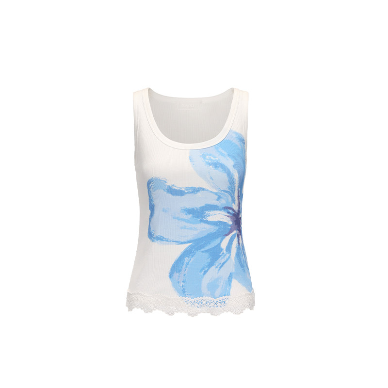 筱李XIAOLI 25春夏新品花朵印花蕾丝拼接针织背心