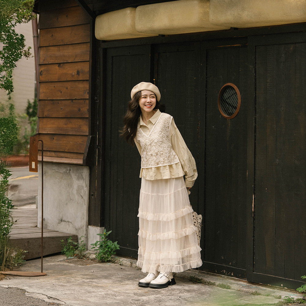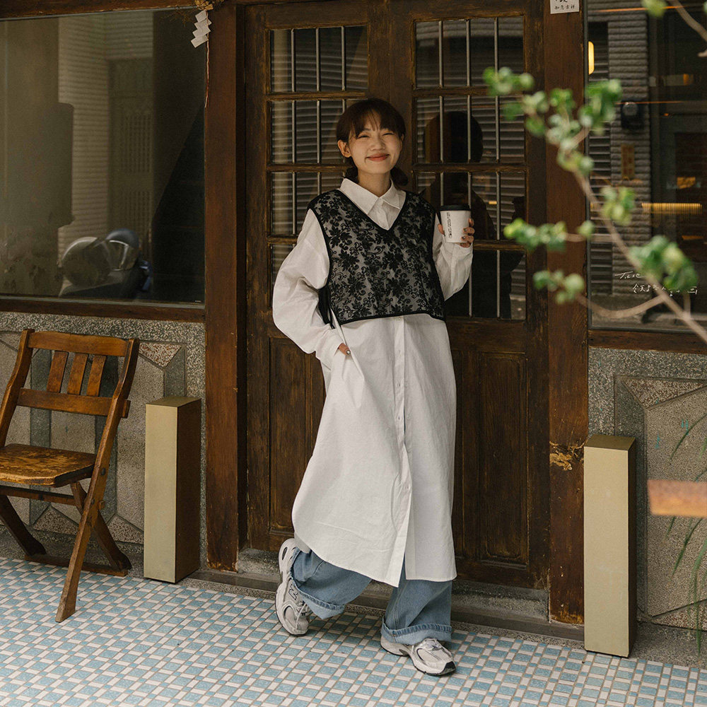 QUEENSHOP 2025秋冬新品女装缇花侧绑带两穿短板背心罩衫01099051