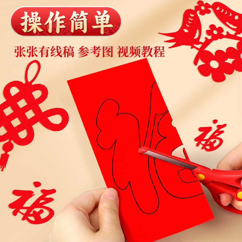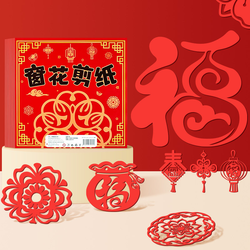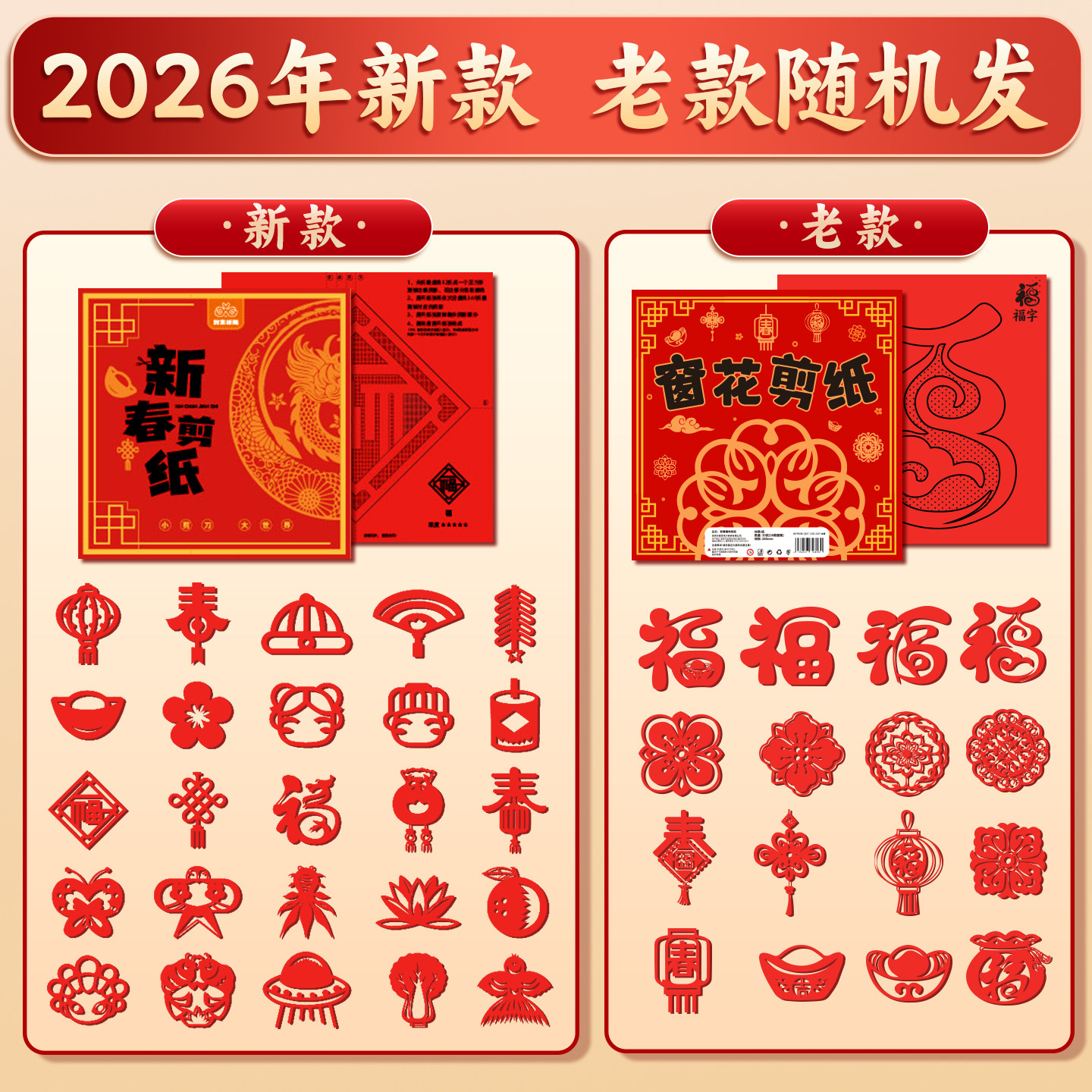 窗花纸剪纸儿童手工专用纸小学生2026年新年马年春节元旦红色纸半成品图案大全底稿幼儿园趣味福字diy特大号D