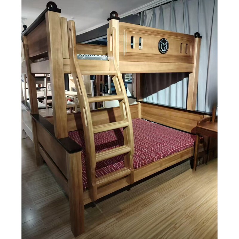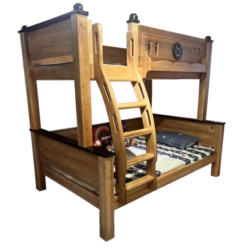 全实木高低床木蜡油子母床鹅掌楸儿童床实木上下铺简约环保双层床