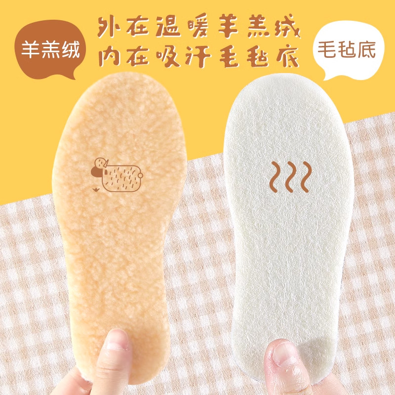 保暖棉儿童鞋垫男女童宝宝加绒羊毛羊羔绒透气吸汗防臭小孩专用冬