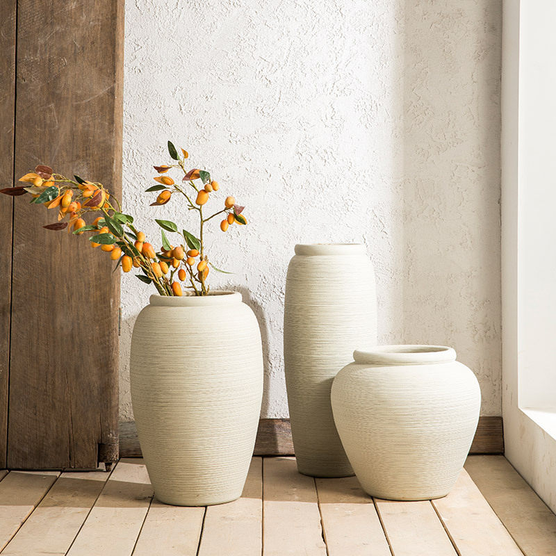 景德镇陶瓷大花瓶北欧客厅插花干花白色落地陶罐现代简约装饰摆件