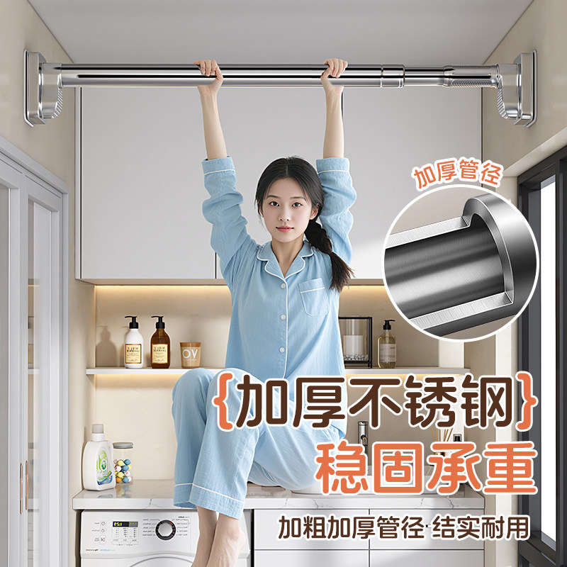 免打孔伸缩杆晾衣杆衣柜不锈钢挂衣杆卫生间浴帘杆阳台家用晾晒杆