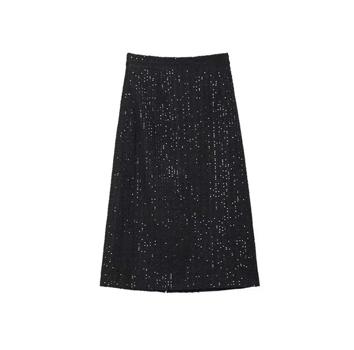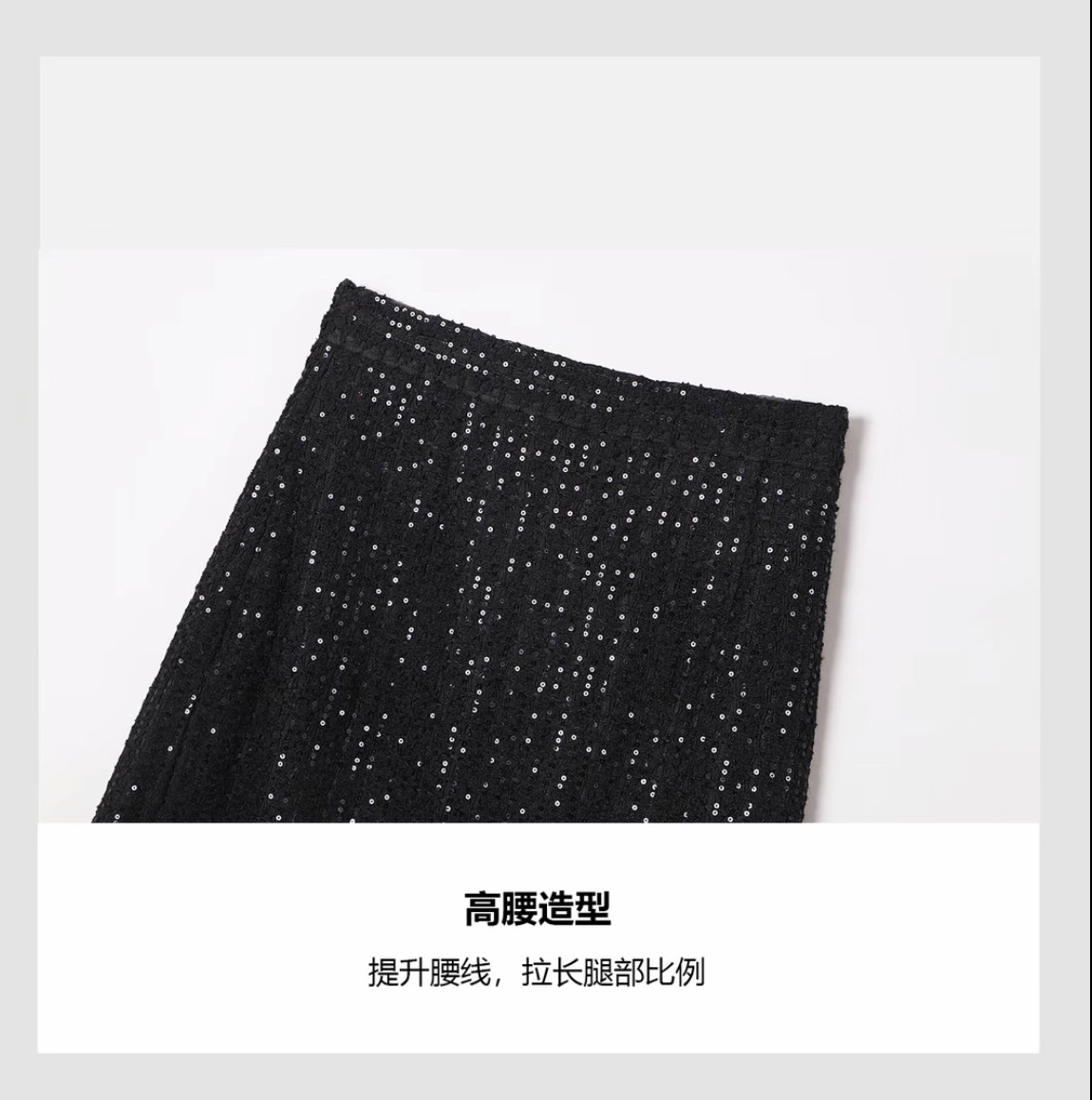 【璀璨女神】官方冬新款高腰显瘦A字裙女亮片点缀垂感优雅半身裙
