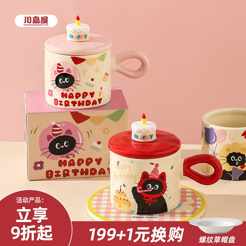 川岛屋猫咪陶瓷马克杯带盖杯子伴手礼水杯家用咖啡杯生日礼物女生