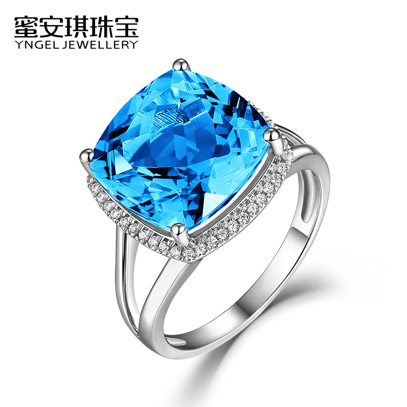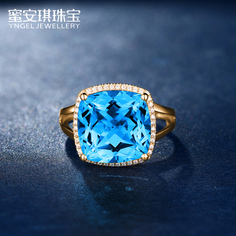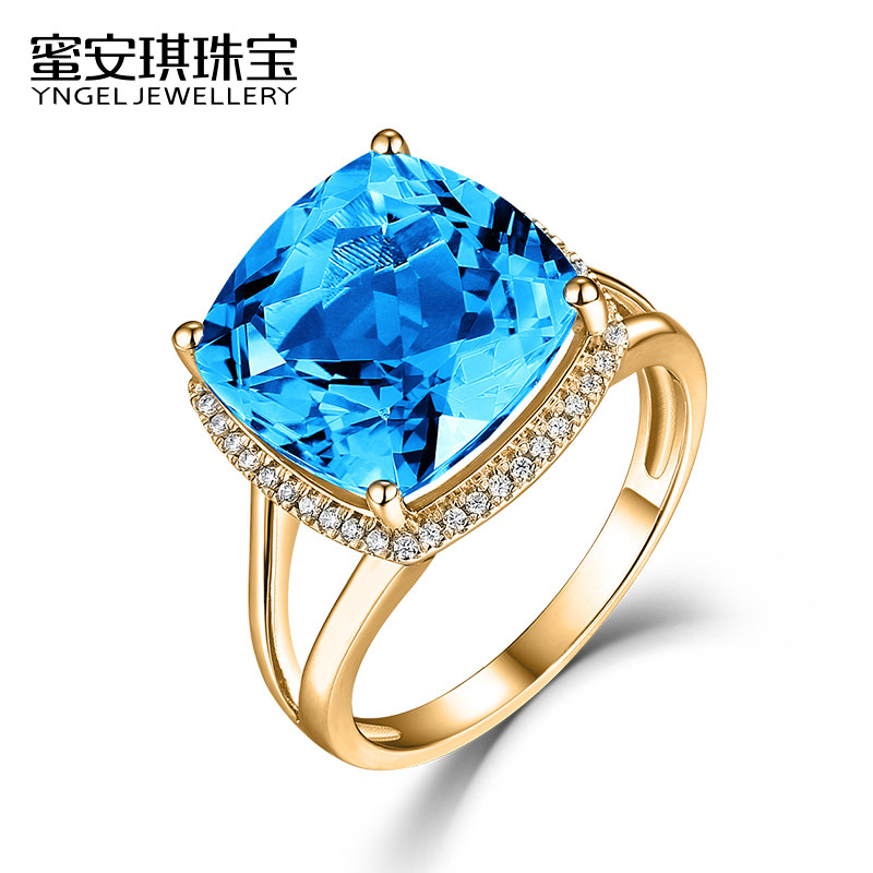 Yngel/蜜安琪12.3克拉天然托帕石戒指女 15.6分钻石镶嵌彩宝定制