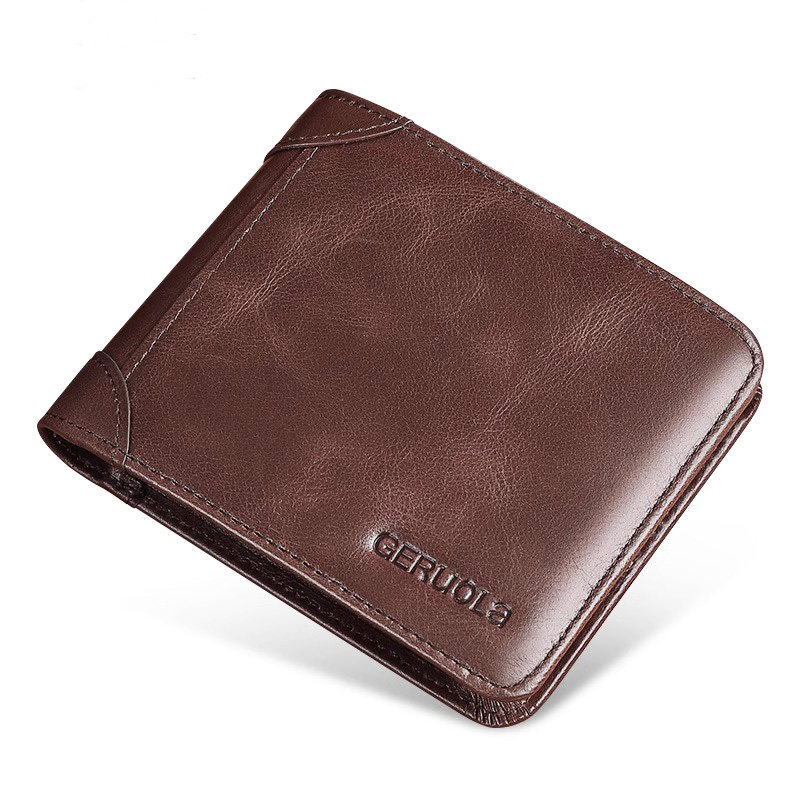 【真皮】皮尔卡丹男士钱包真皮短款送男友老公礼物牛皮驾驶证皮夹