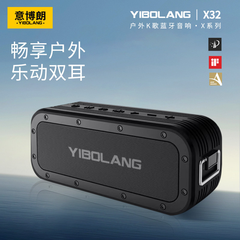 意博朗X32无线蓝牙音响80W功率IPX6级防水TWS互联可插TF卡插U盘
