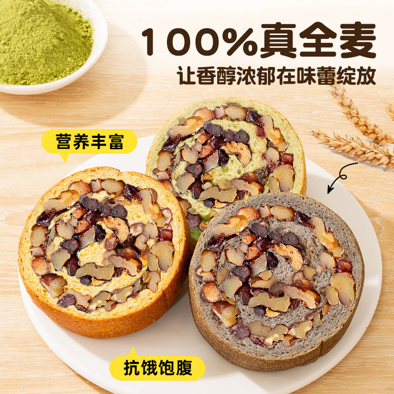 良品铺子坚果车轮面包全麦吐司早餐糕点零食孕妇粗粮代餐休闲食品