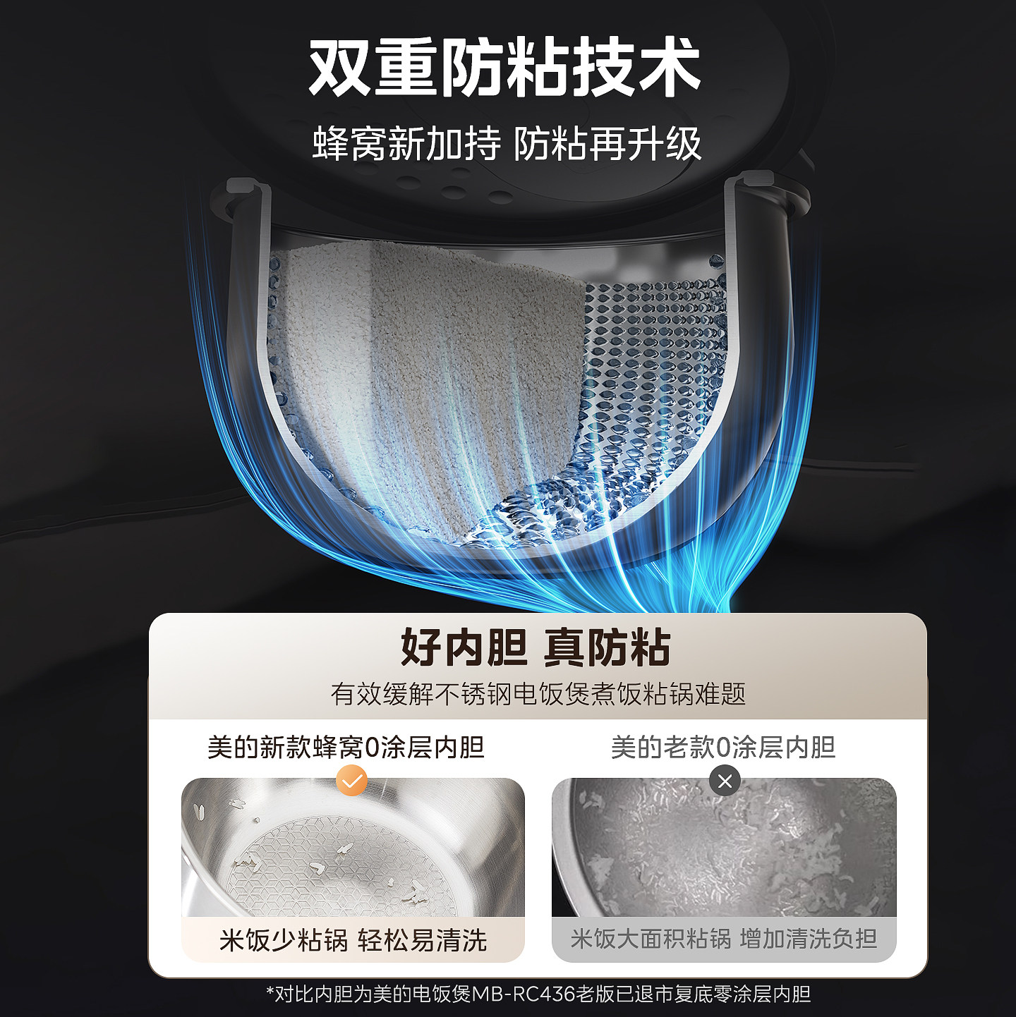 美的无涂层电饭煲4L家用0涂层IH电饭锅316不锈钢内胆正品官方旗舰