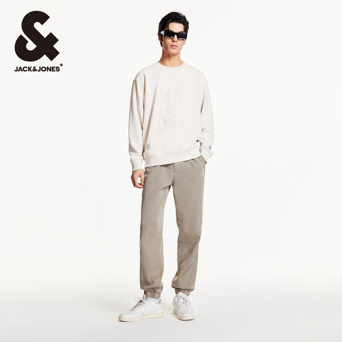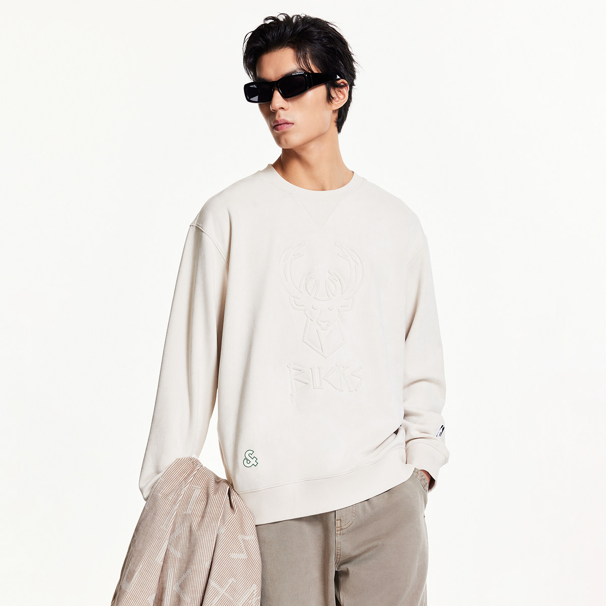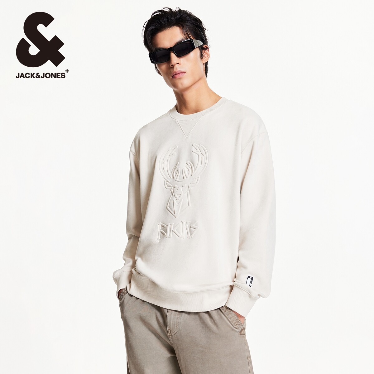 杰克琼斯男装NBA联名雄鹿队25秋冬圆领卫衣logo刺绣宽松篮球卫衣