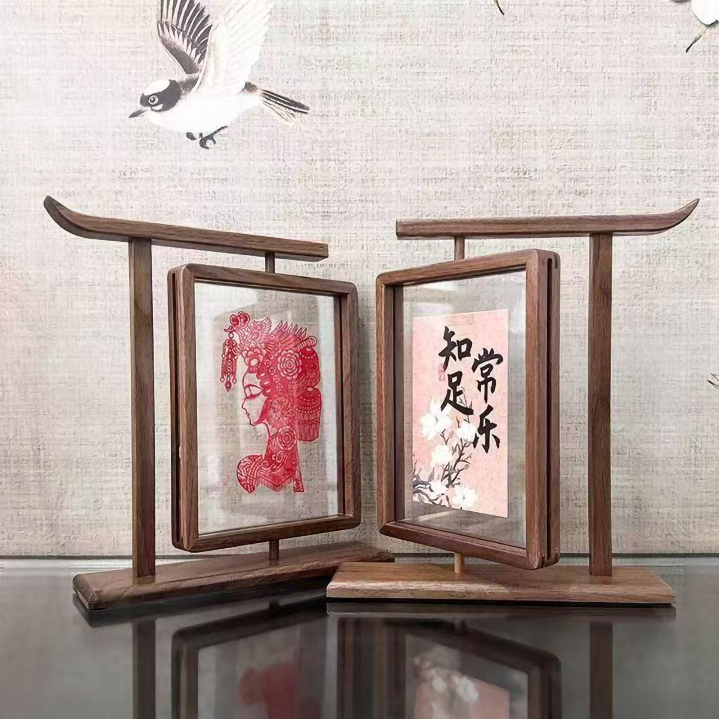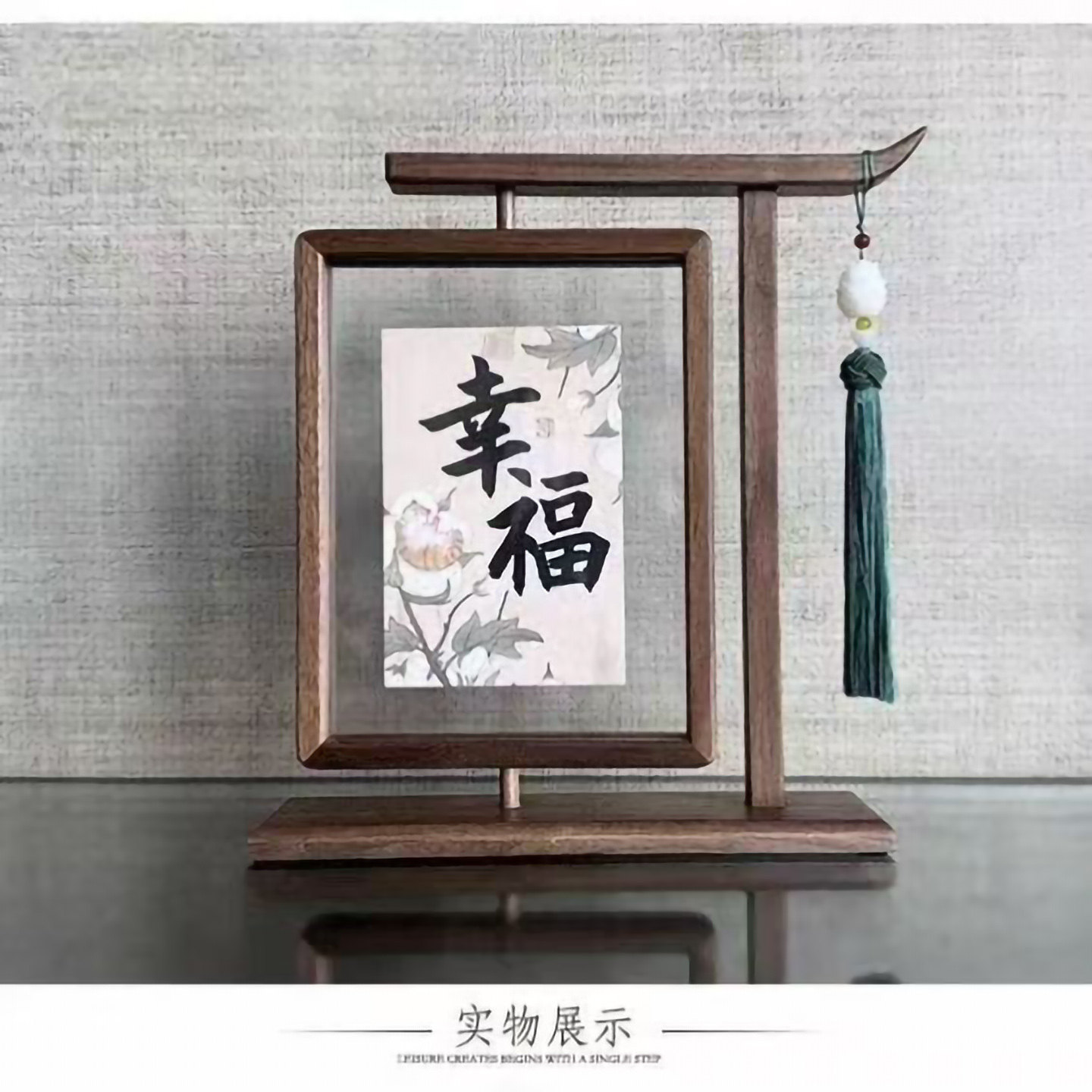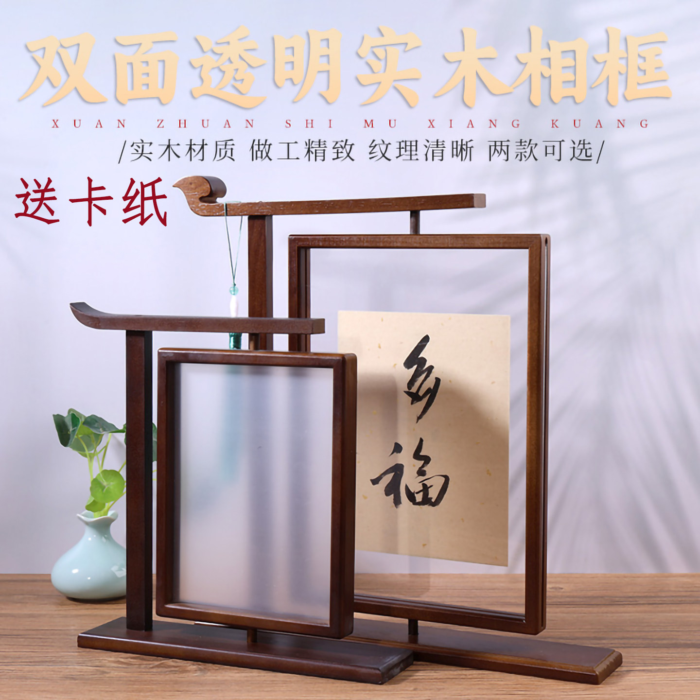 创意实木旋转新中式相框摆台8寸双面办公桌A4旋转展示架菜单画框