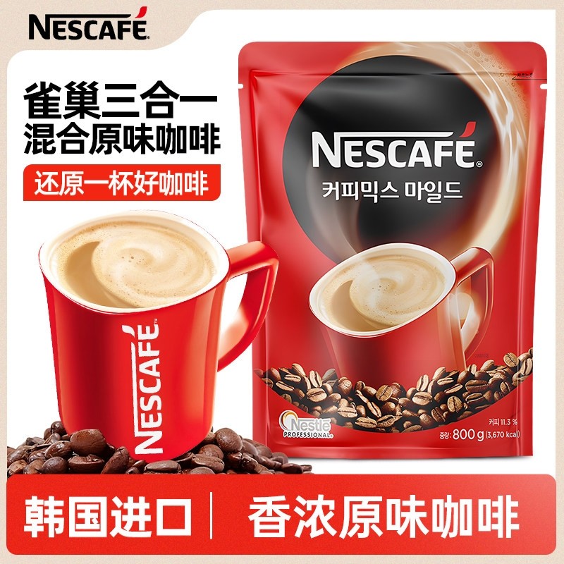 韩国雀巢三合一速溶咖啡粉原味提神学生大袋800g原装进口伴侣3合1