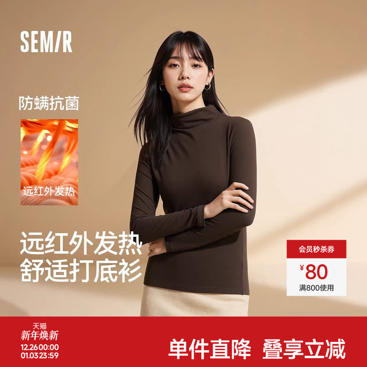 森马内衣女T恤长袖春季舒适纯色打底衫休闲抑菌热能衣内外皆可穿
