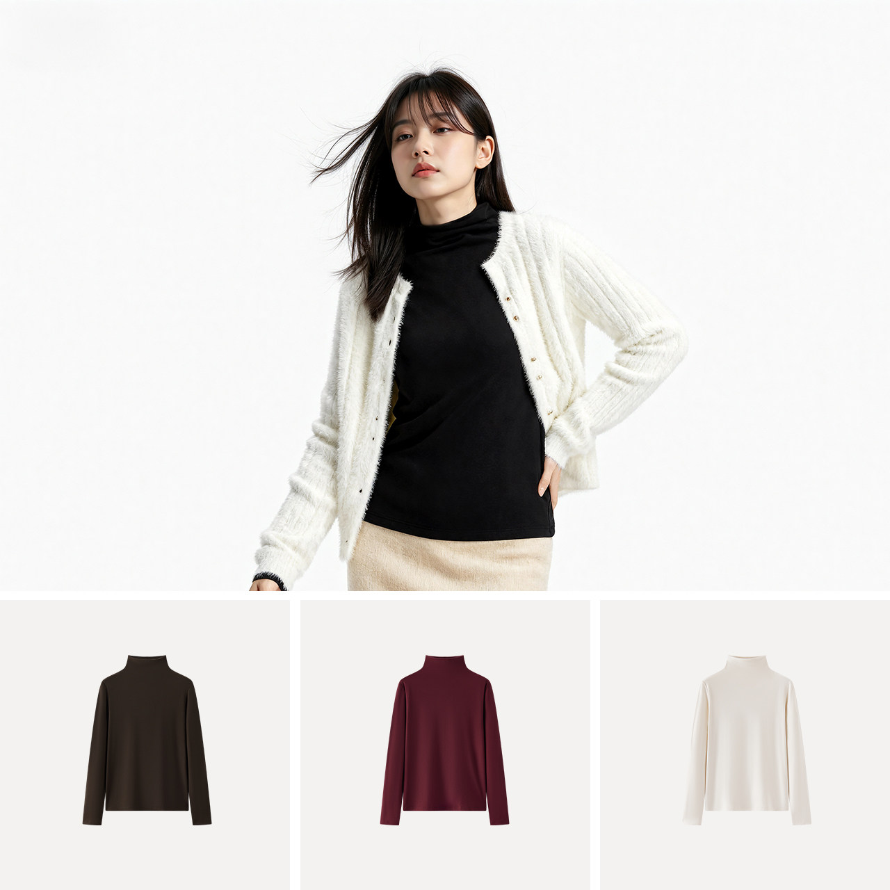 蕉下摇粒绒打底衫女秋季新款半高领保暖加绒亲肤内搭上衣肌底衣